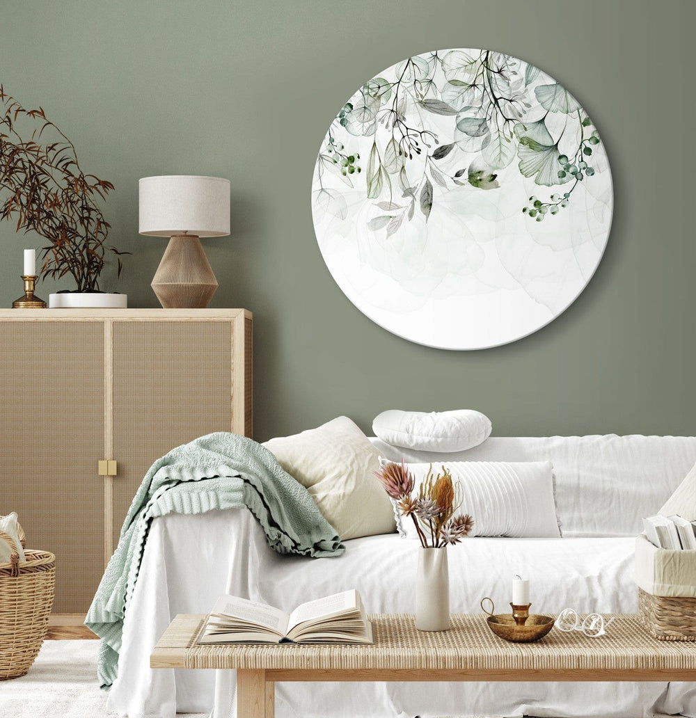 Pyöreä сanvas-taulut (Deluxe) - Lehdet vaaleanvihreät, 148675