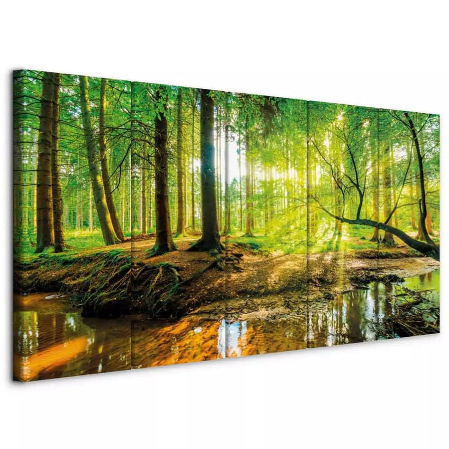 Canvas-taulut aurinkoisella metsällä - Forest Stream, (x 5), 125044