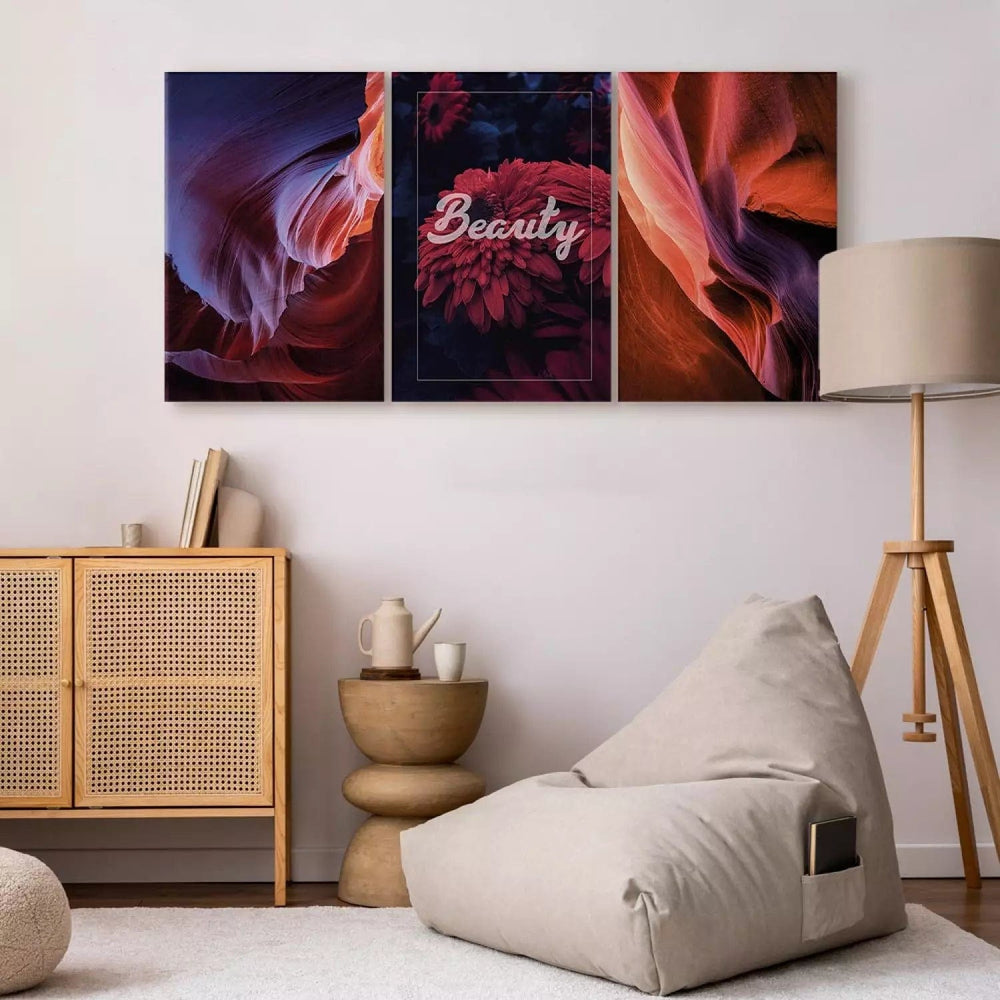 Canvas-taulut - Grand Canyonin katkelma - englanninkielinen merkintä "Beauty", (x 3), 118474