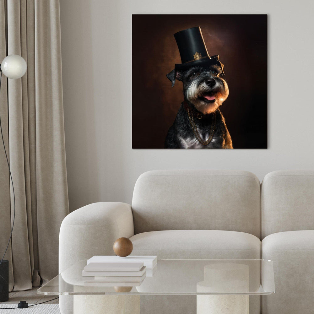 Canvas-taulut - Miniature Schnauzer - Muotokuva iloisesta koirasta, jolla on hattu päässä, 150125