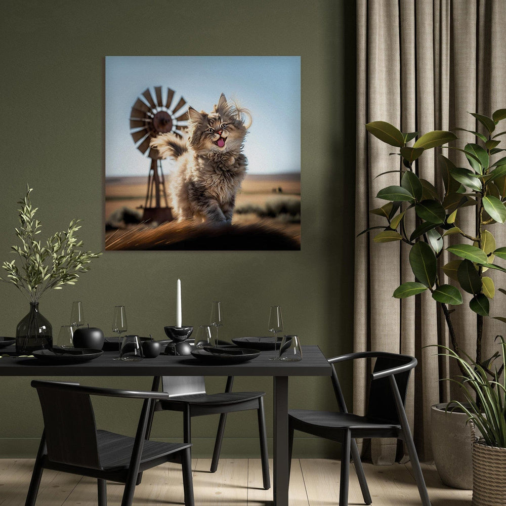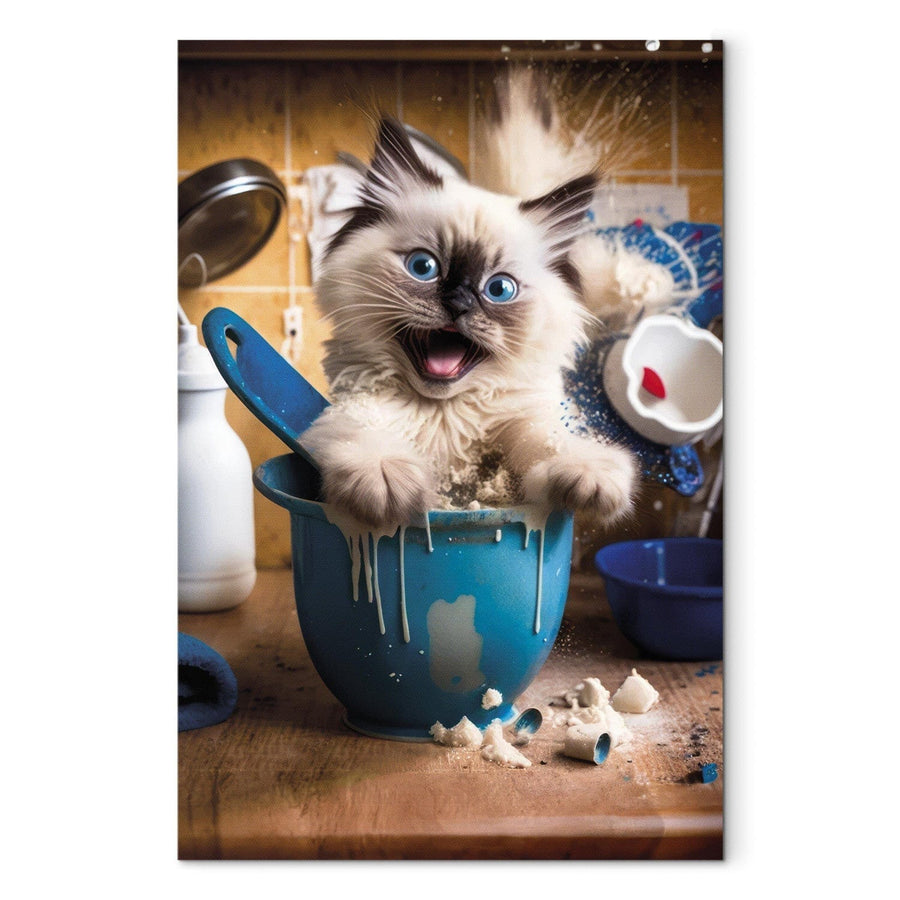 Glezna no mākslīgā intelekta - Pūkains kaķis spēlē virtuvē, 150141 G-ART
