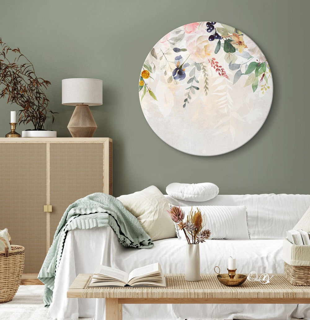 Pyöreä сanvas-taulut (Deluxe) - Akvarellin kukat, 148853