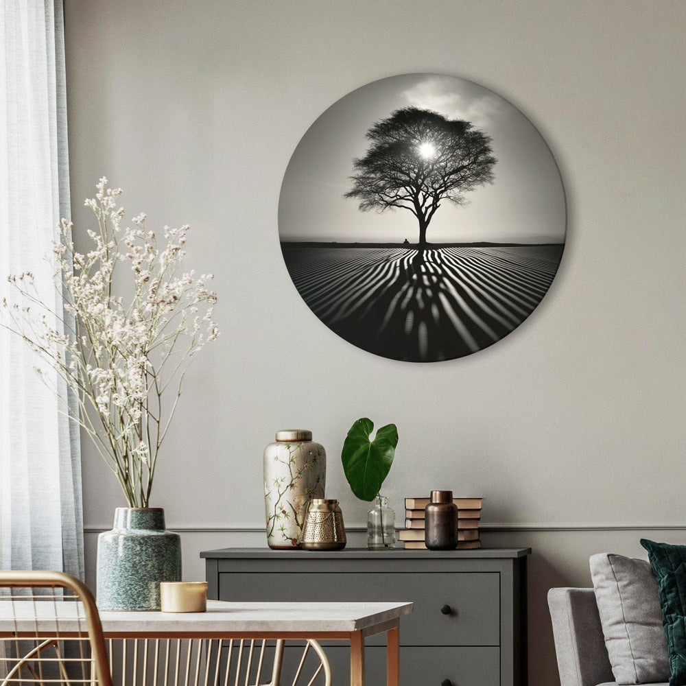 Apaļa glezna - Melnbaltā ainava ar saulrietu - 151582 G-ART