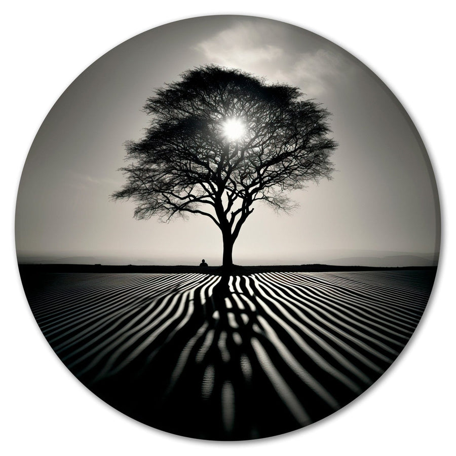 Pyöreä сanvas-taulut - Mustavalkoinen maisema auringonlaskun kanssa, 151582