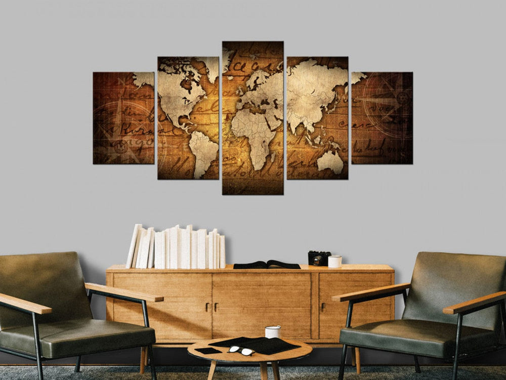 Canvas-taulut vintage maailmankartalla - Amber Map, 91859, (x5)