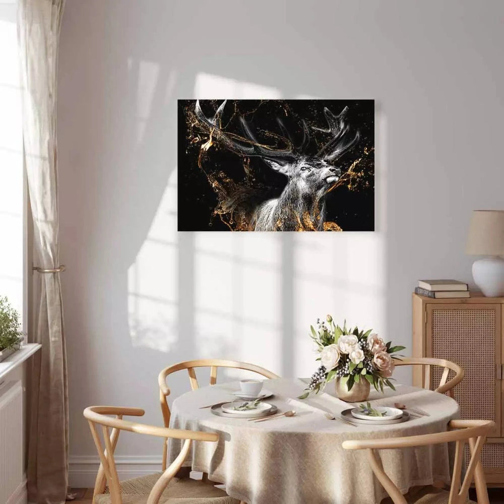 Canvas-taulut - Hirvi mustalla pohjalla kultaisilla korostuksilla, (x 1), 130562