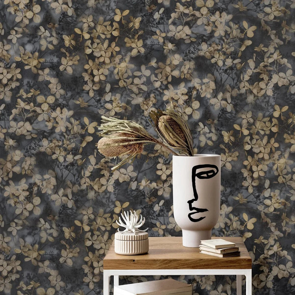 Musta tapetti, jossa raffiakuvio ja kangasta, 1360370