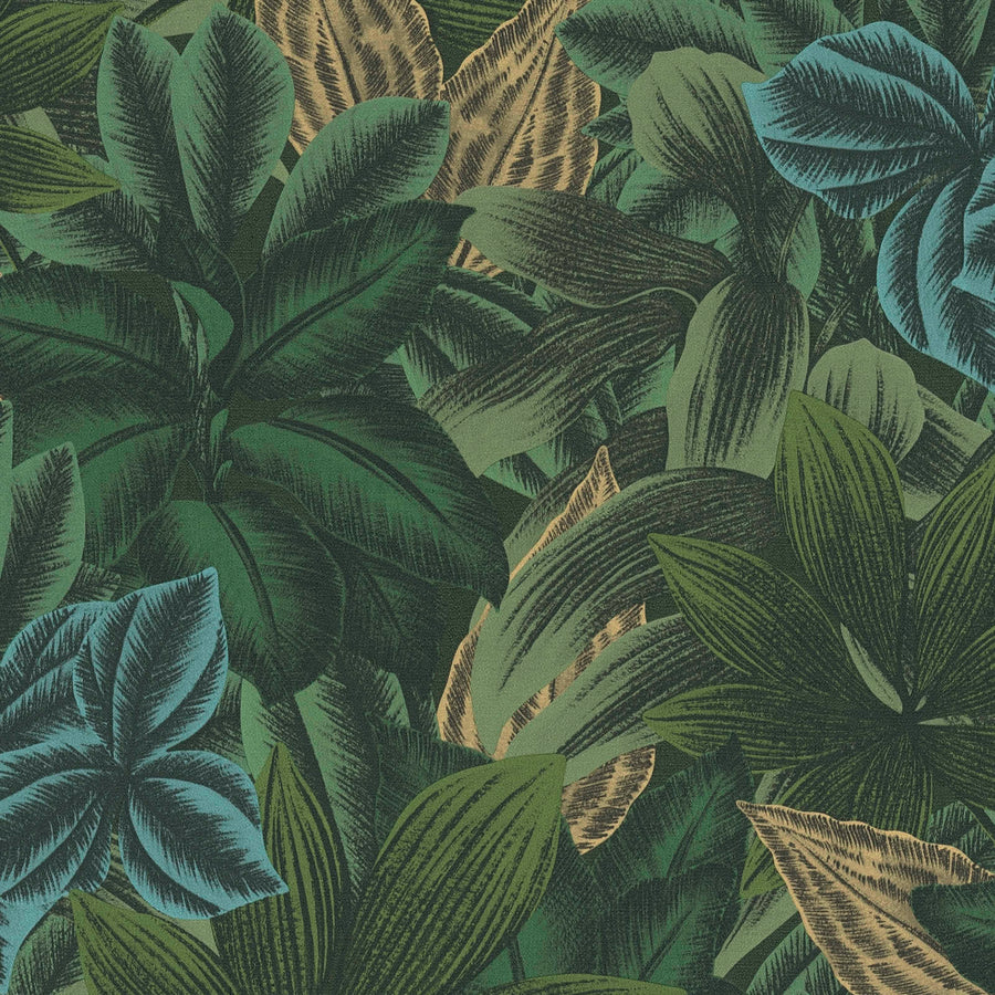 Džungļu tapetes ar tropu lapu rakstu zaļā krāsā - 1376040 AS Creation