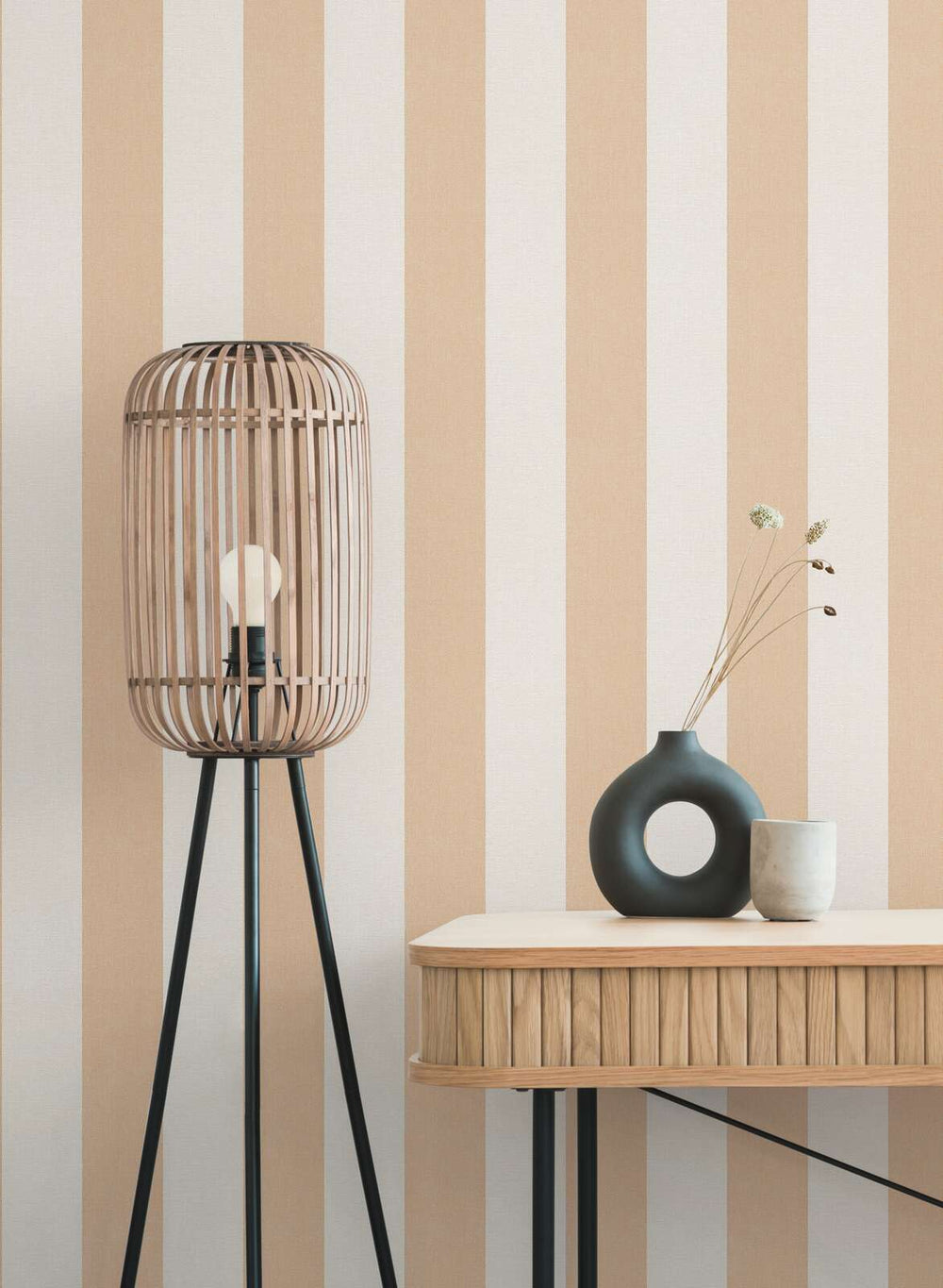 Raidallinen tekstiilitapetti - oranssi/kermanvärinen - 1411166 - 1411166