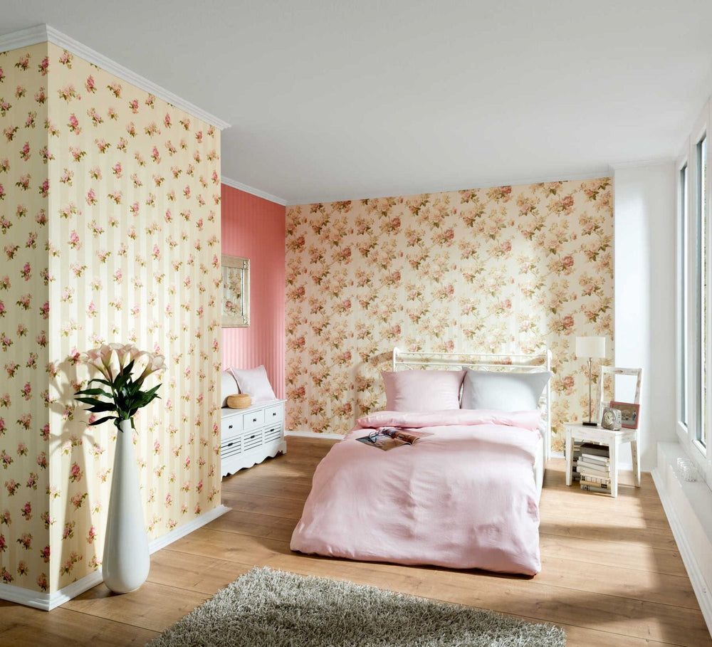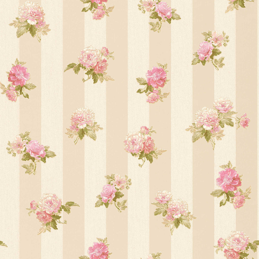 Tapetes ar rožu rakstu un svītrām, krēmā un rozā krāsā, 304474 AS Creation