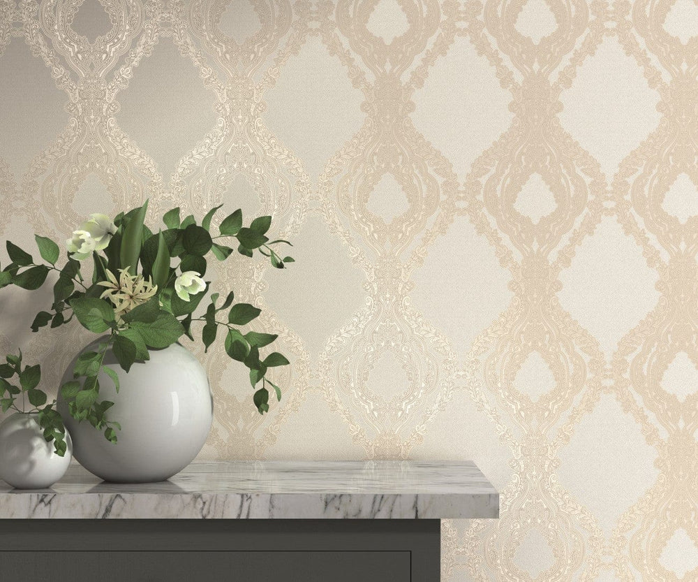 Baroka tapetes ar ornamentu un spīdīgu rakstu, krēmkrāsā - 1373725 AS Creation
