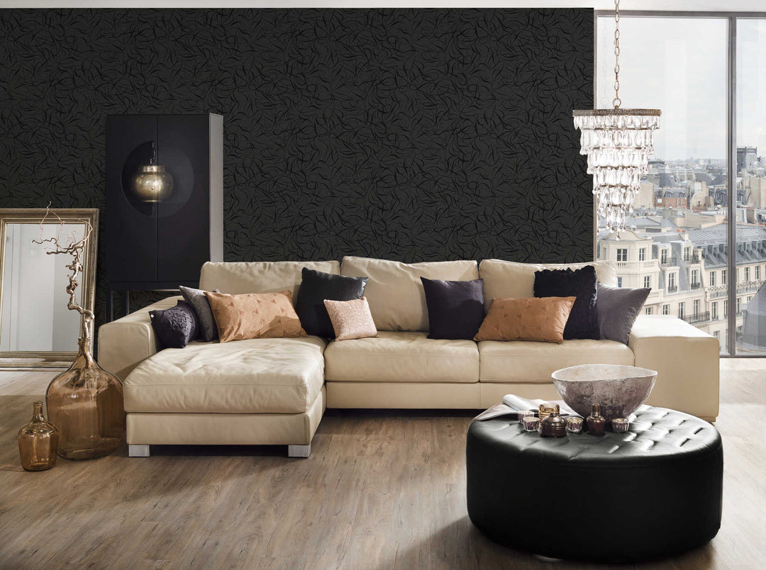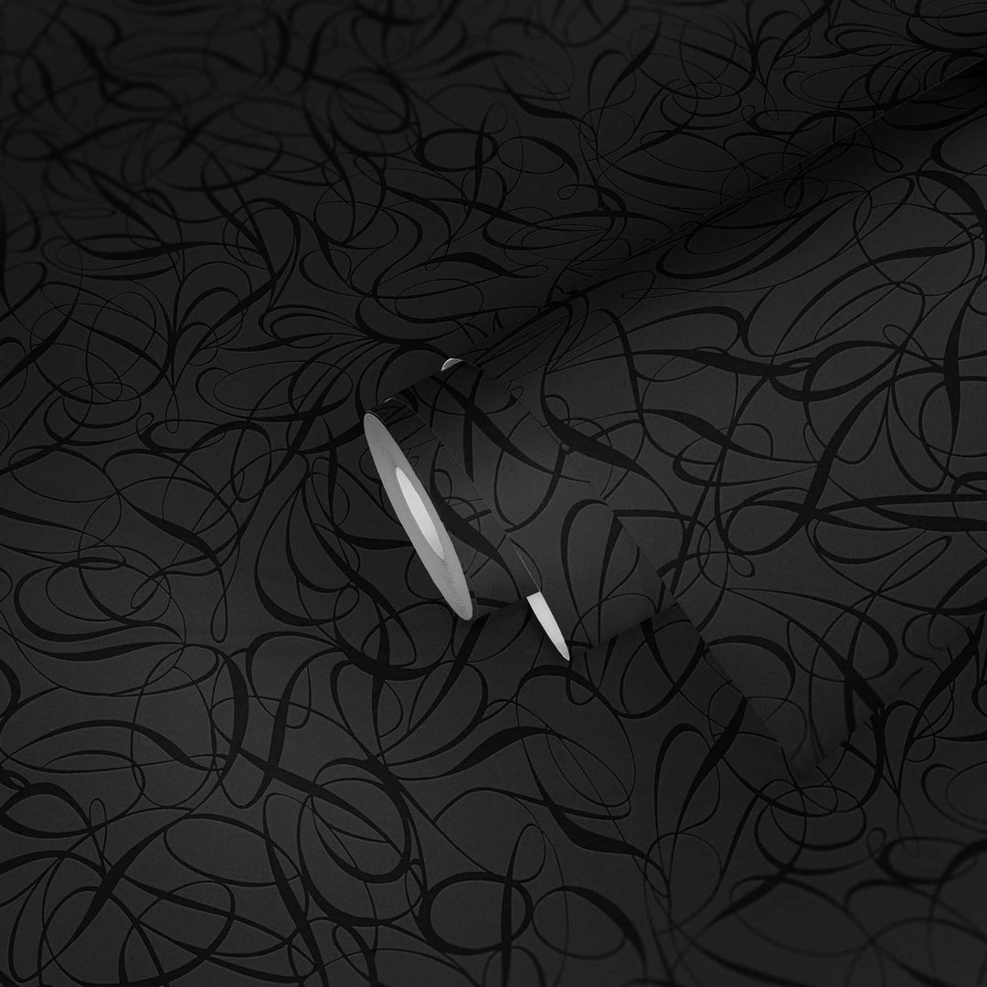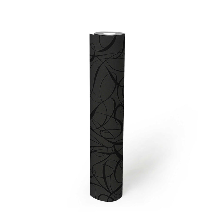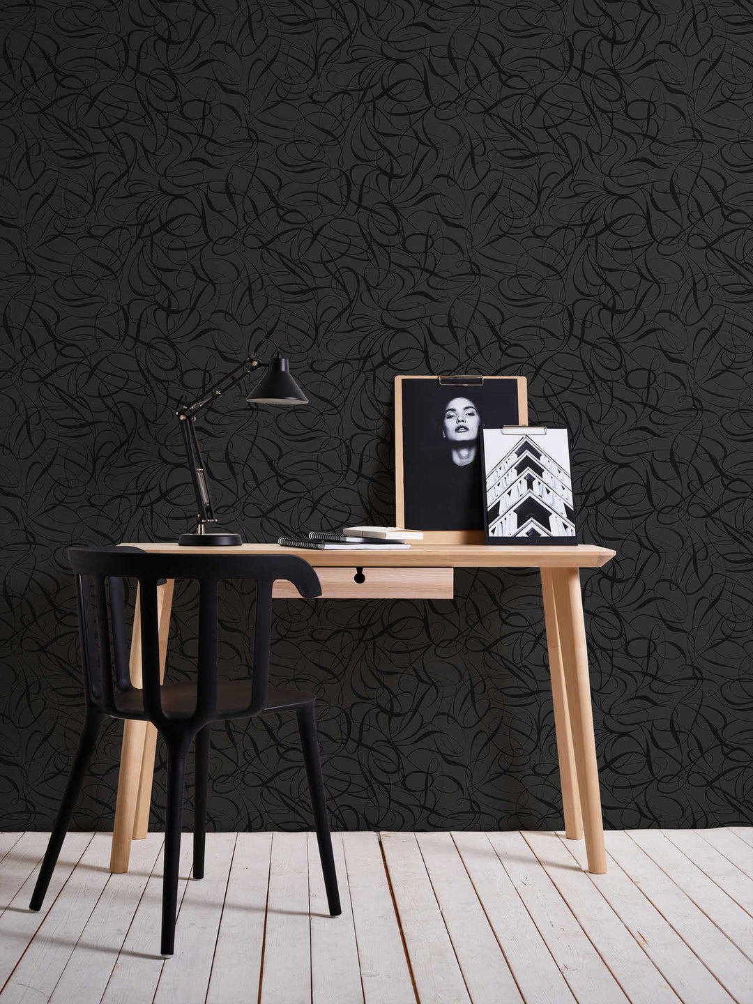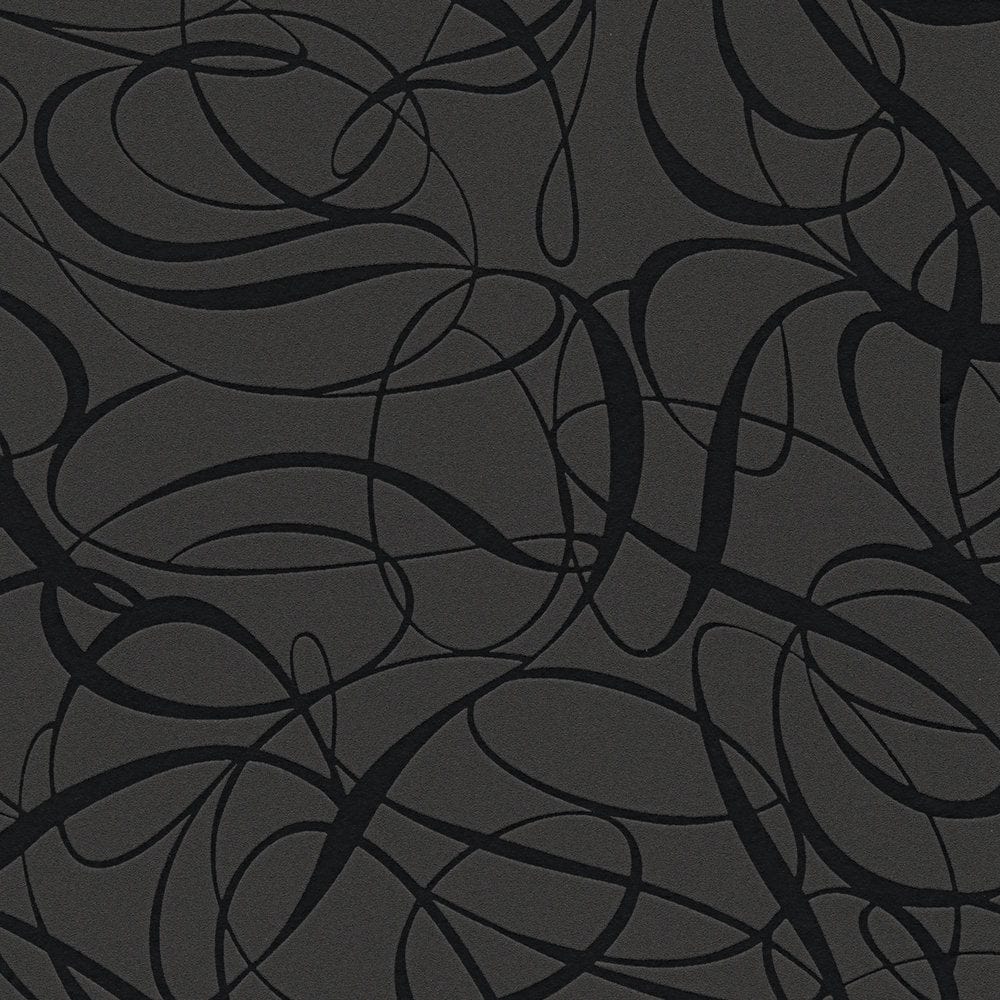 Tapetti viivakuviolla ja kiiltoefektillä - musta, metallinen, 132062