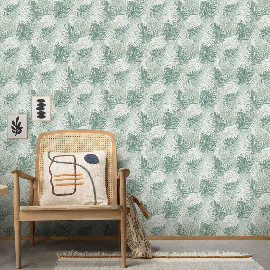 Trooppiset lehdet tapetti vihreä, artikkeli nro. 3745377, valmistaja Erismann (Saksa). Hieman kuvioitu mattapinta, jossa on hieman hohtava kuvio, luo trooppisen ja eloisan tunnelman. Materiaali: flizeline-tapetti. Rullan koko 0,53x10 m.