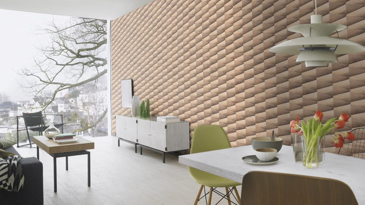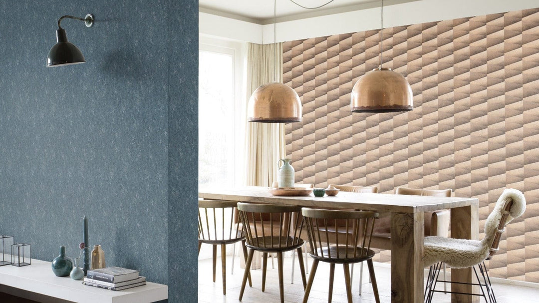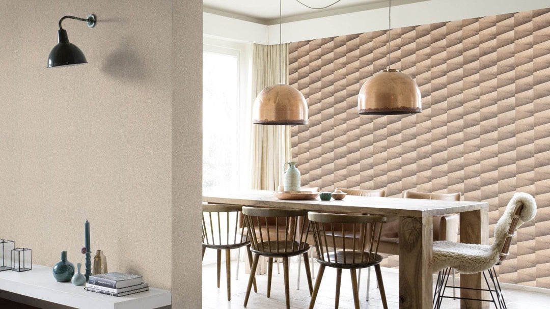 Yksilöllinen, luonnollinen, tyylikäs ja myös hieman retro. Ihana, tasapainoinen yhdistelmä kiehtovaa kuviota, jossa on kolmiulotteinen vaikutus, omaperäistä rakennetta ja hienovarainen värisävy vaaleasta kullasta tummanruskeaan. Tämä kuitukankainen seinäpäällyste lupaa olla suuri katseenvangitsija millä tahansa seinällä.