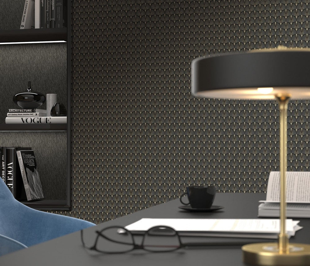 Kuvioitu tapetti, hieman kiiltävä, musta ja pronssi, 1404540