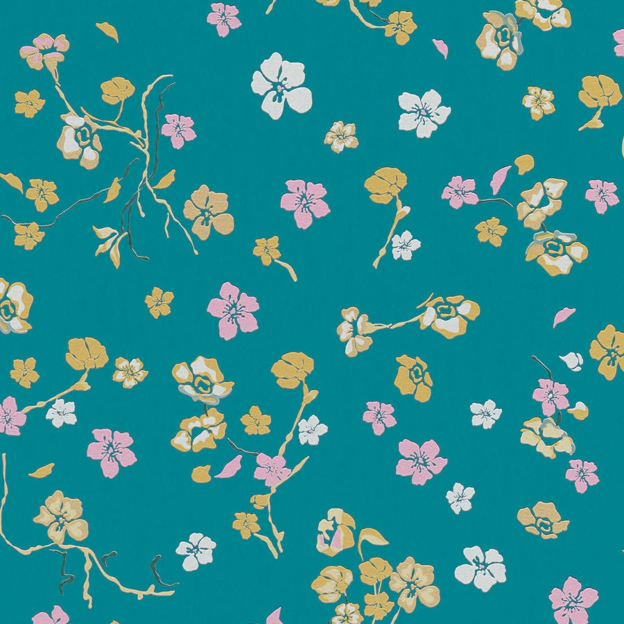 Tapetes ar smalkiem ziediem uz tirkīza fona, AS Creation 389072 AS Creation