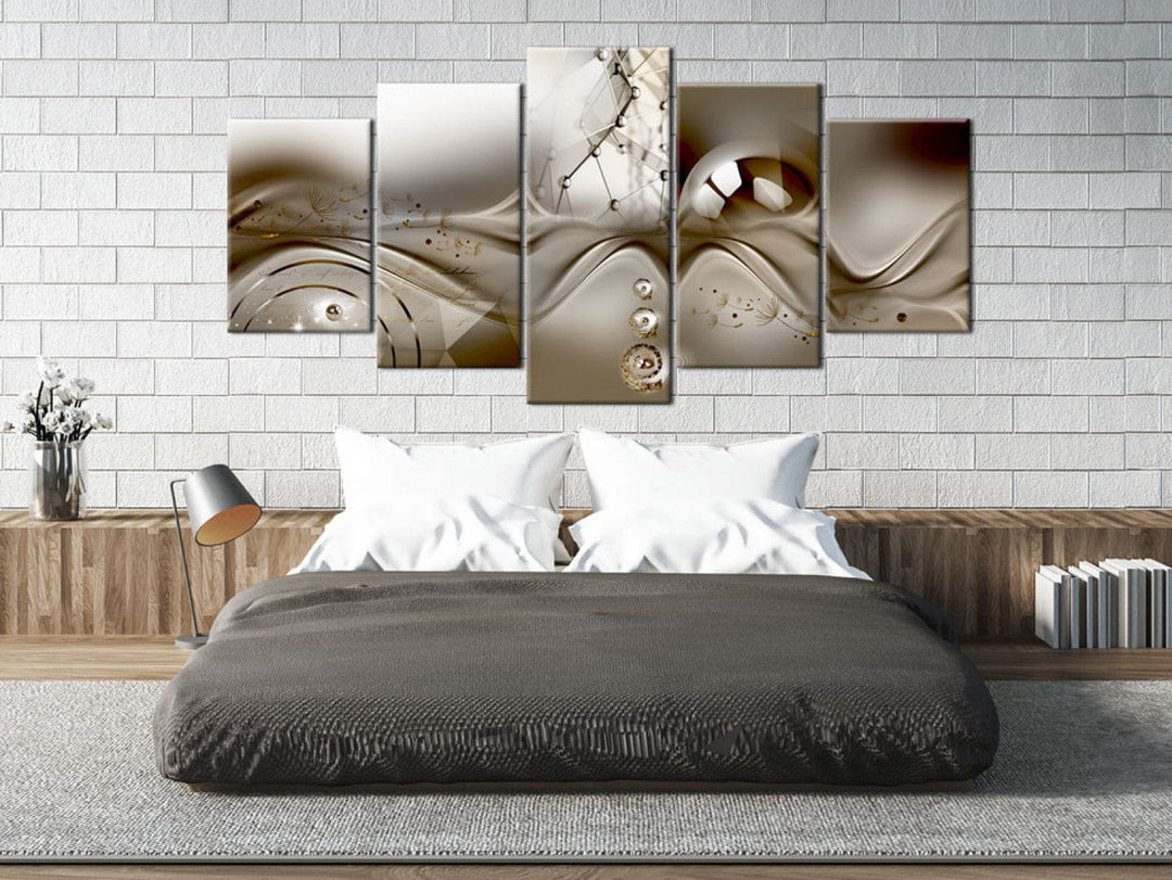 Canvas-taulut abstraktio beigen sävyillä - Taiteellinen epäsuhta, (x5), 90436