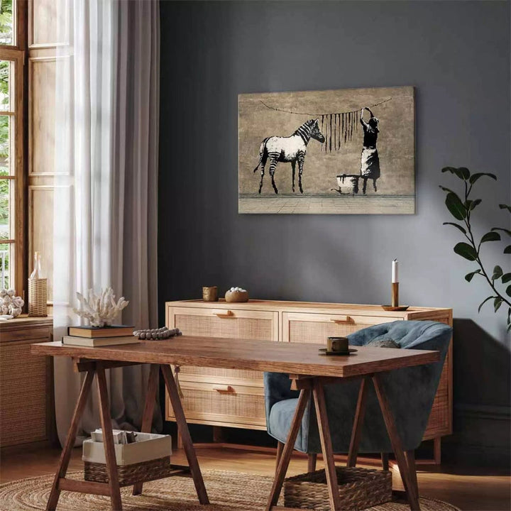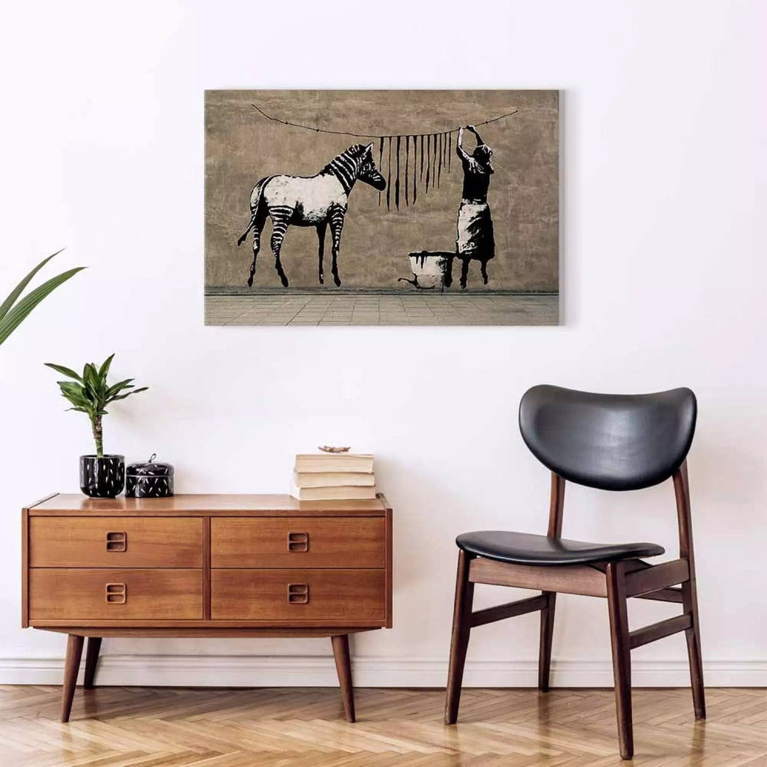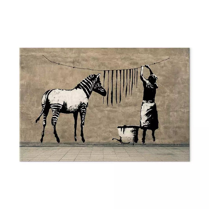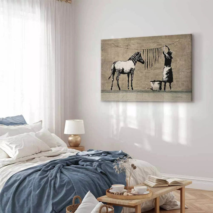 Canvas-taulut Banksy graffitilla - Zebra wash (ruskean sävyjä), (x 1), 132447