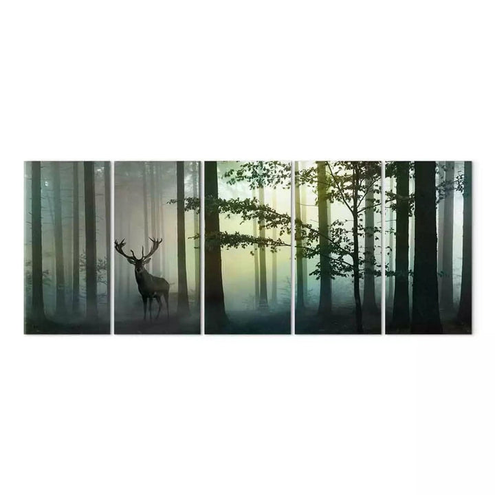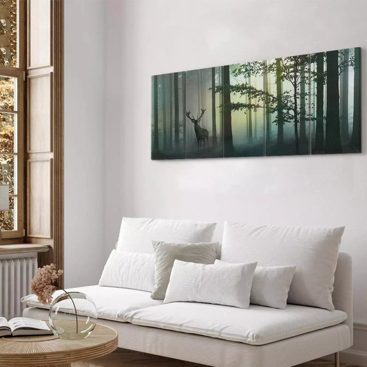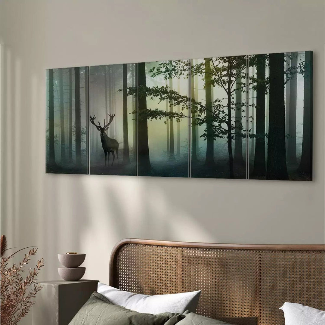 Canvas-taulut luonnon kanssa - peura metsässä, vihreät sävyt, (x 5), 118922