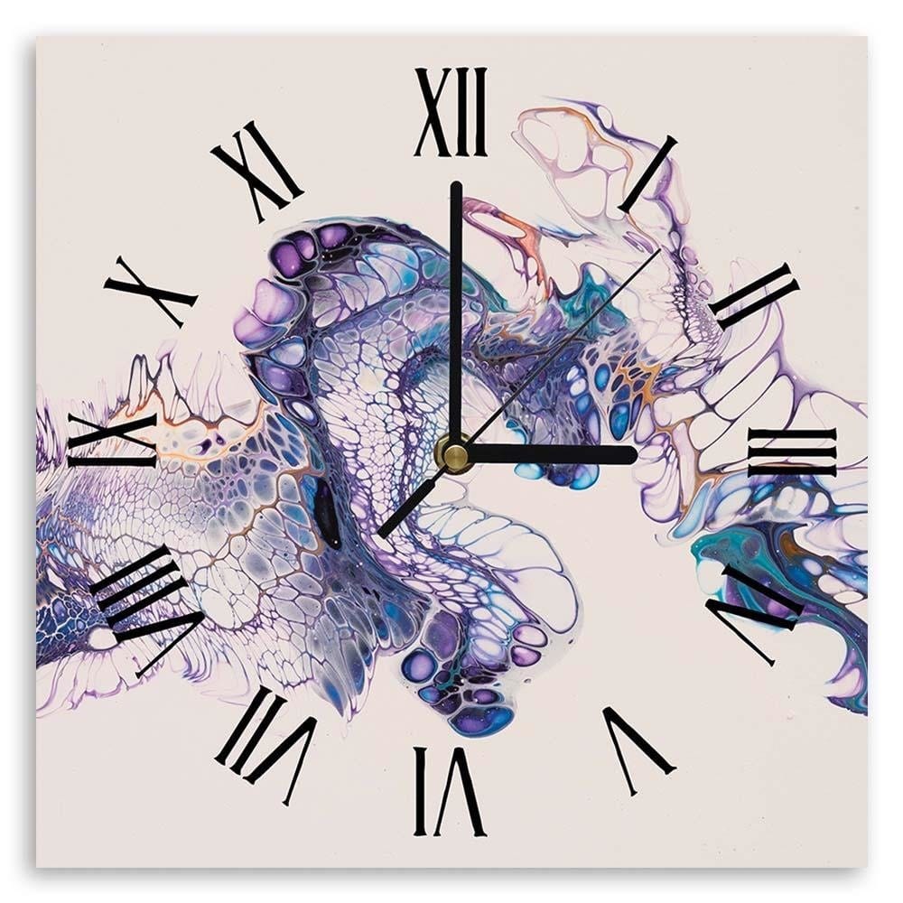 Koristeellinen seinäkello - marmori (violetilla sävyillä)