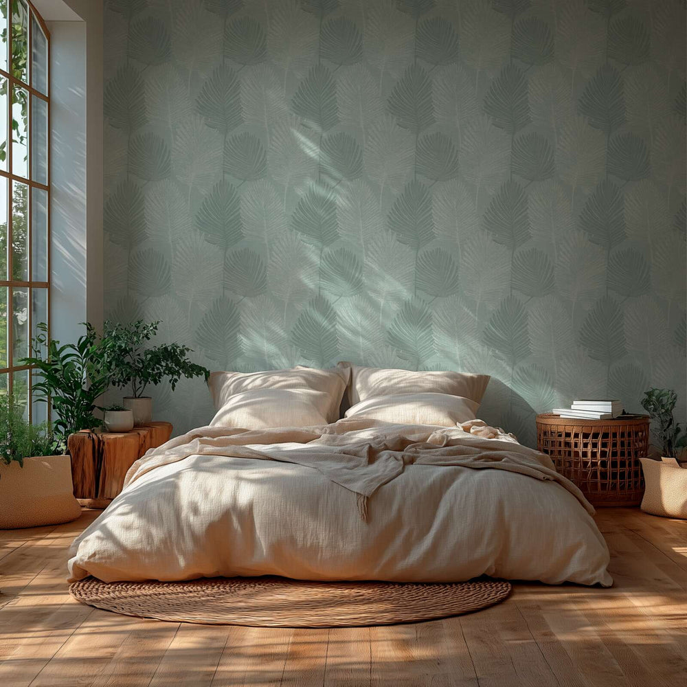 Tapetti, jossa on laattamalli ja lehtikuvio - vihreä