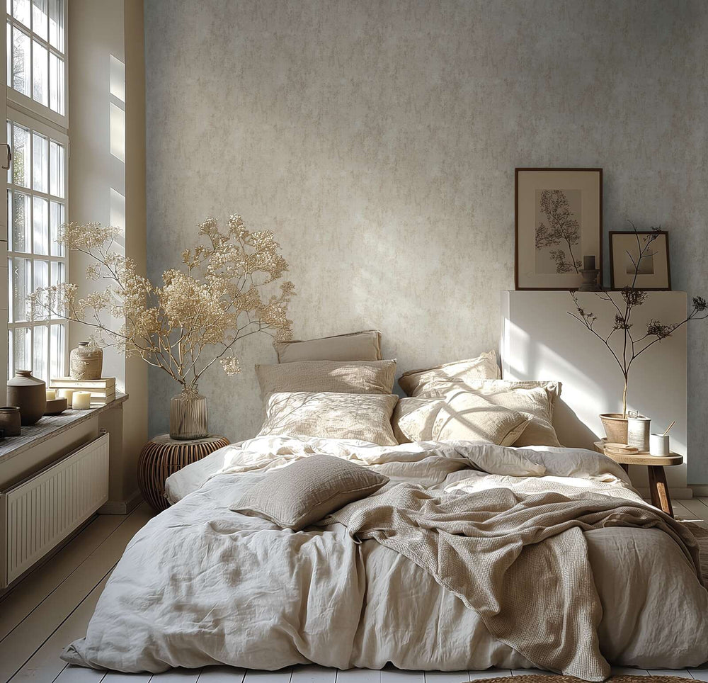 Yksivärinen tapetti luonnonmukaisella stukki-ilmeellä - beige, kermanvärinen - 2777563