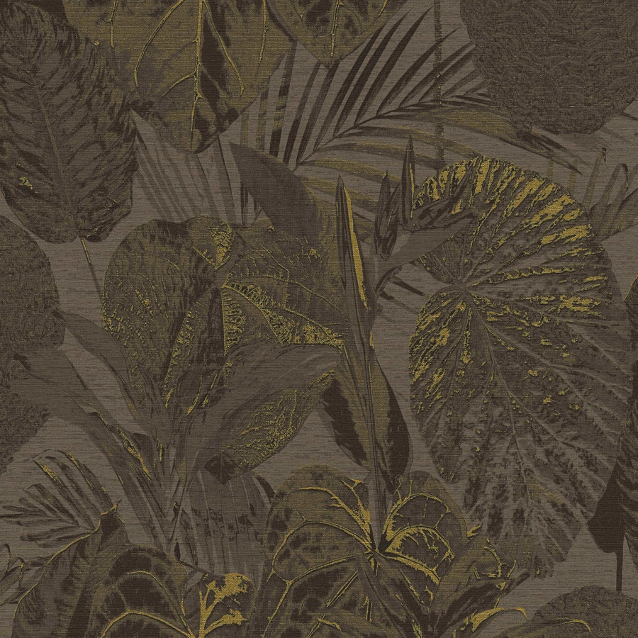 Tapetes ar džungļu rakstu, matētas: brūna, zelta, melna, 393552 AS Creation