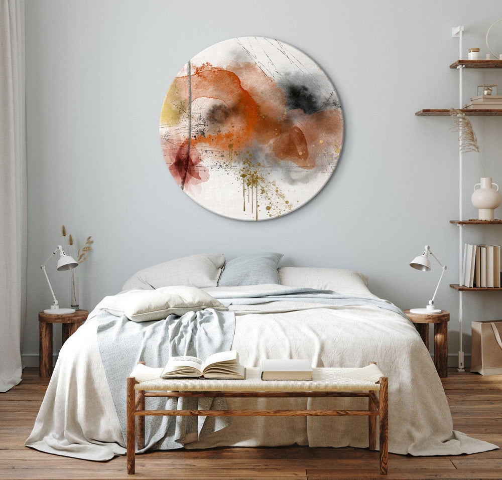 Apaļa formāta glezna - Akvareļu abstrakcija siltos toņos, 148715 G-ART
