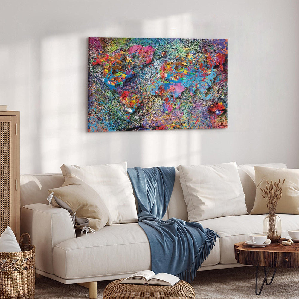 Glezna – abstrakta pasaules karte - Džeksona Polloka iedvesma, 92599 G-ART.