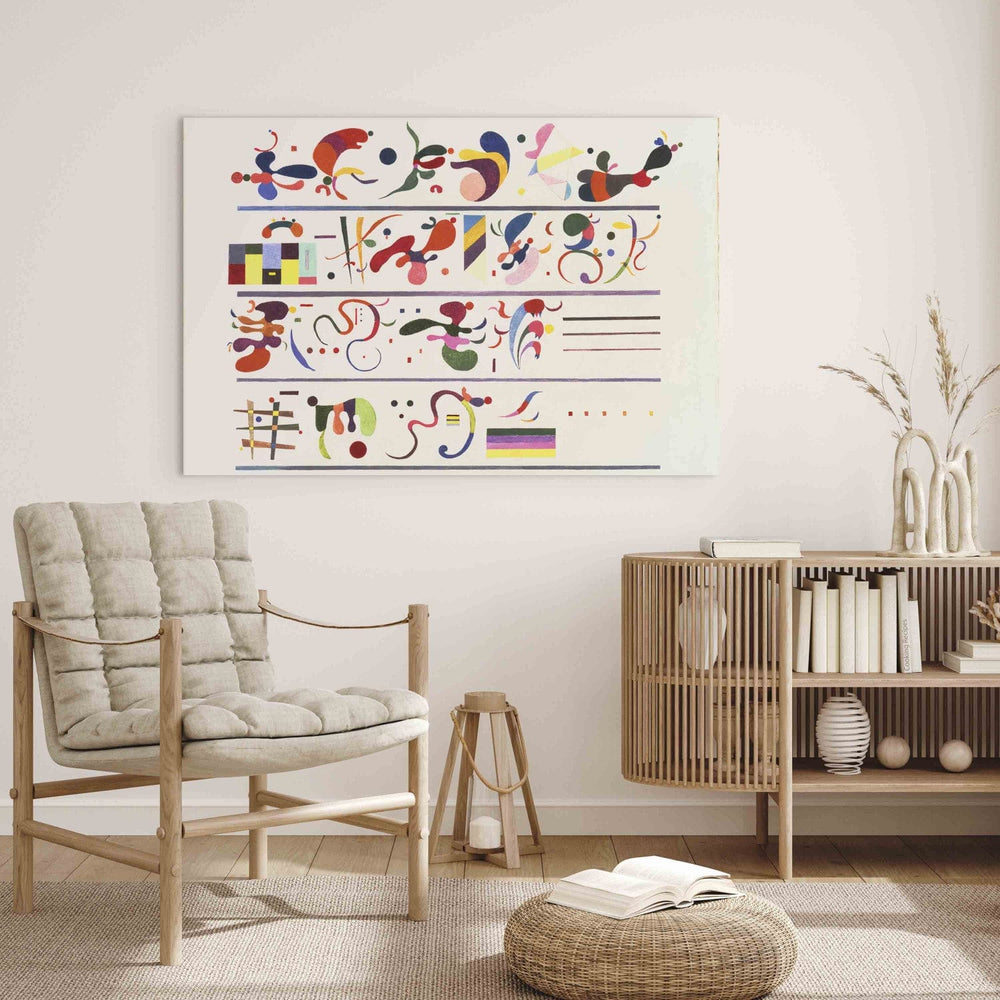 Suurikokoinen maalaus - Kandinskyn perintö - värikkäät symbolit valkoisella pohjalla, 151650, koko XXL