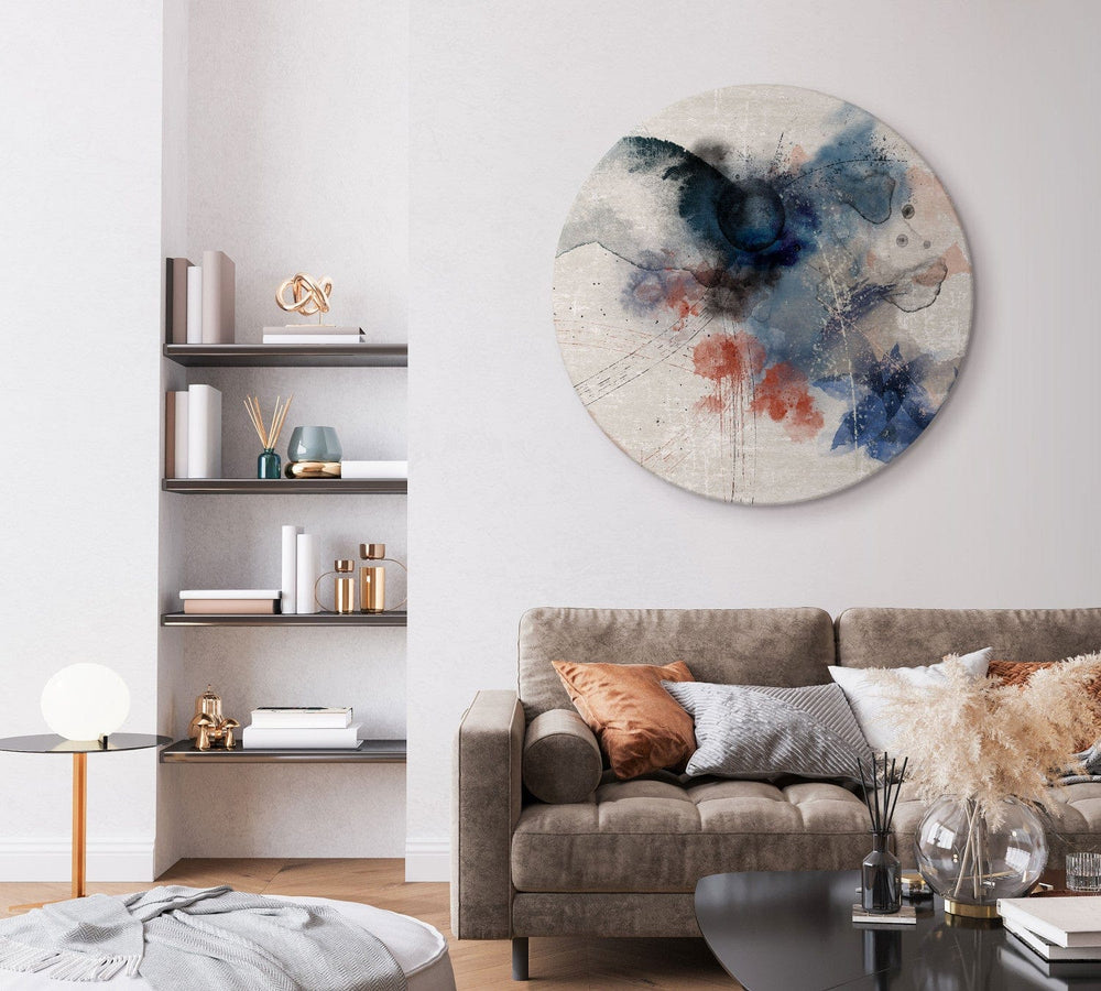 Pyöreä сanvas-taulut (Deluxe) - Abstraktio sinisillä tahroilla, 148633