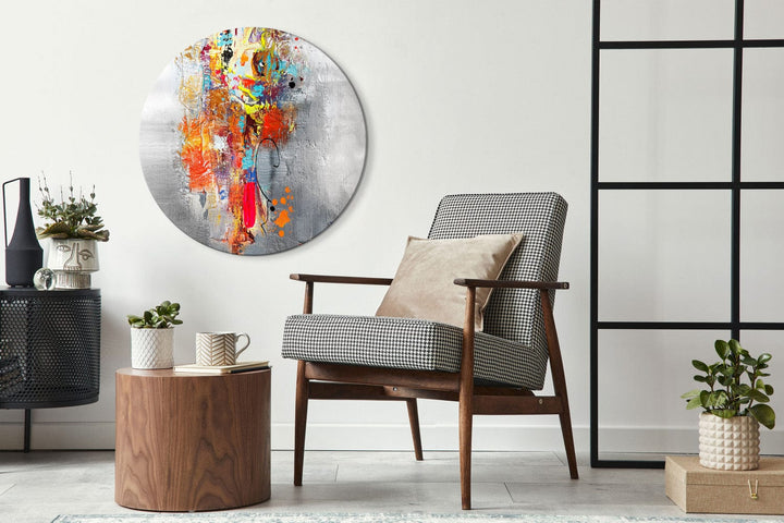 Pyöreä сanvas-taulut (Deluxe) - Värien rikkaus, abstraktit kirkkaat värit harmaalla taustalla, 148759