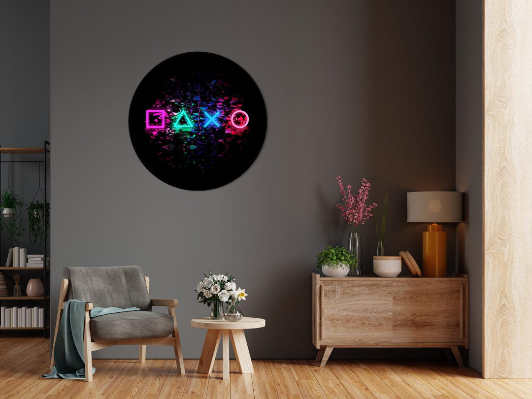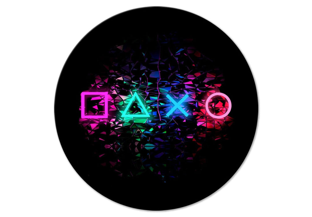 Pyöreä сanvas-taulut - Neon pelikonsolin symbolit mustalla taustalla, 149728