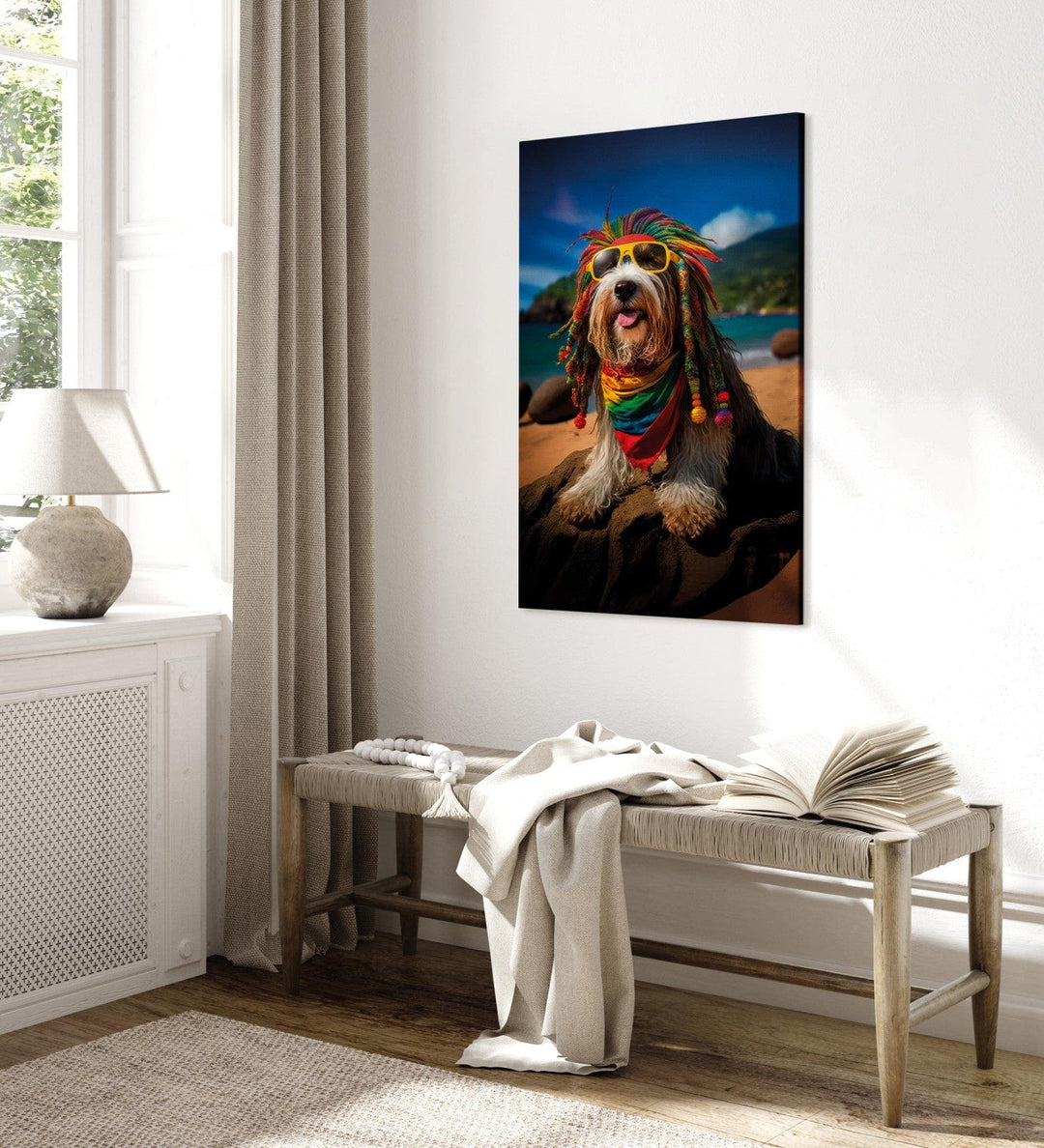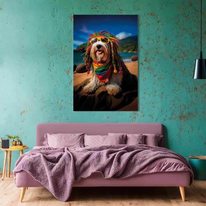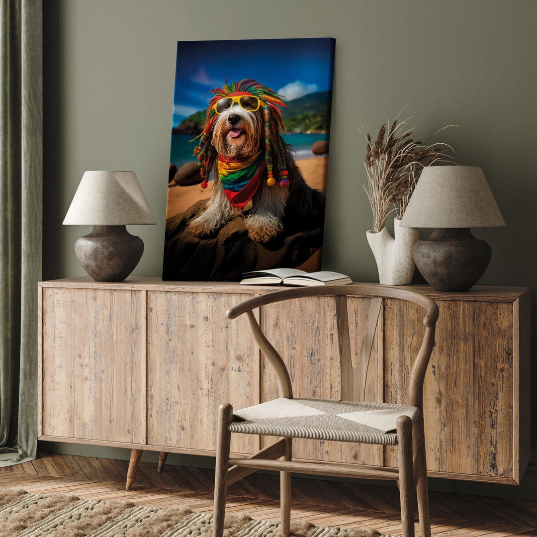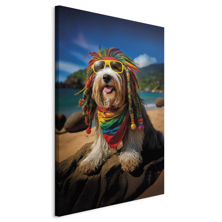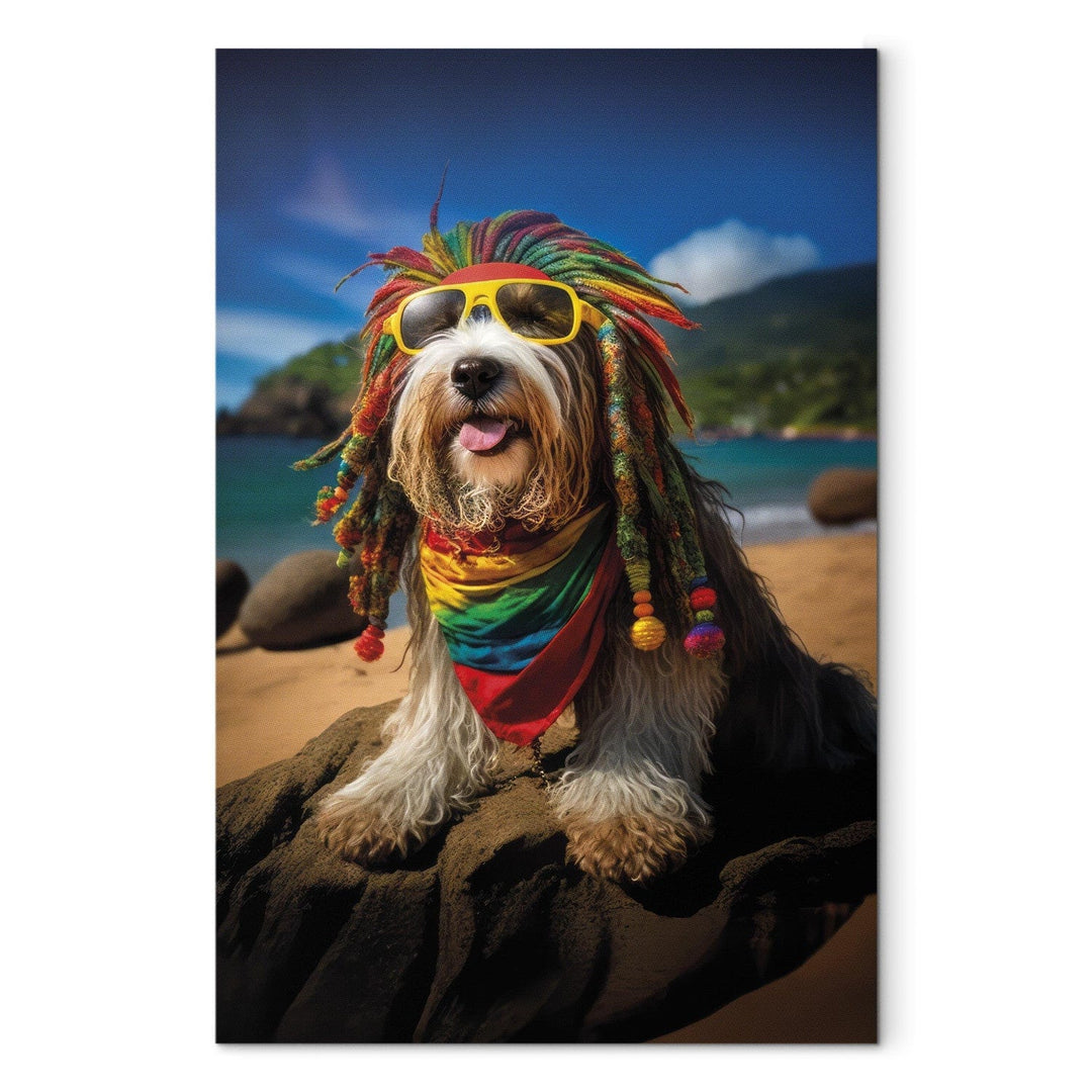 Canvas-taulut - Bearded Collie - Rasta-koira rentoutumassa Paratiisirannalla, 150255