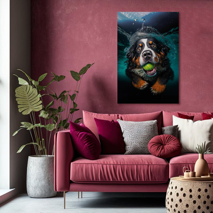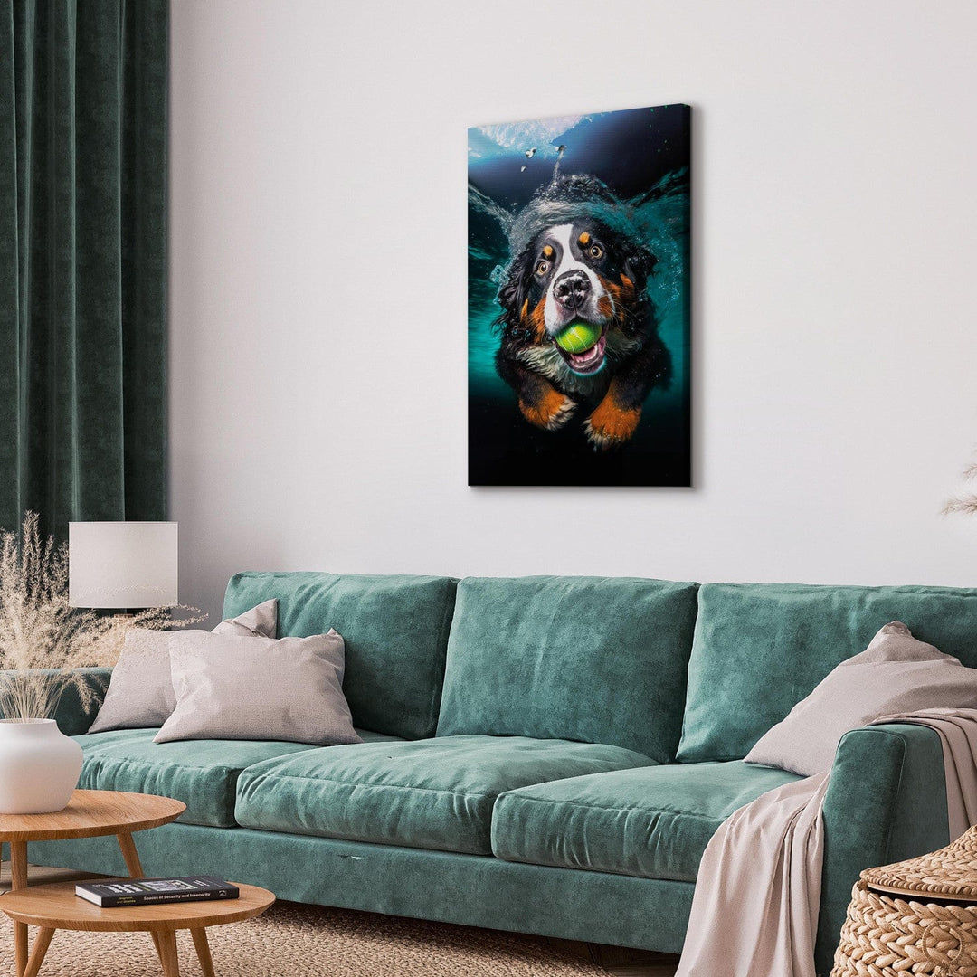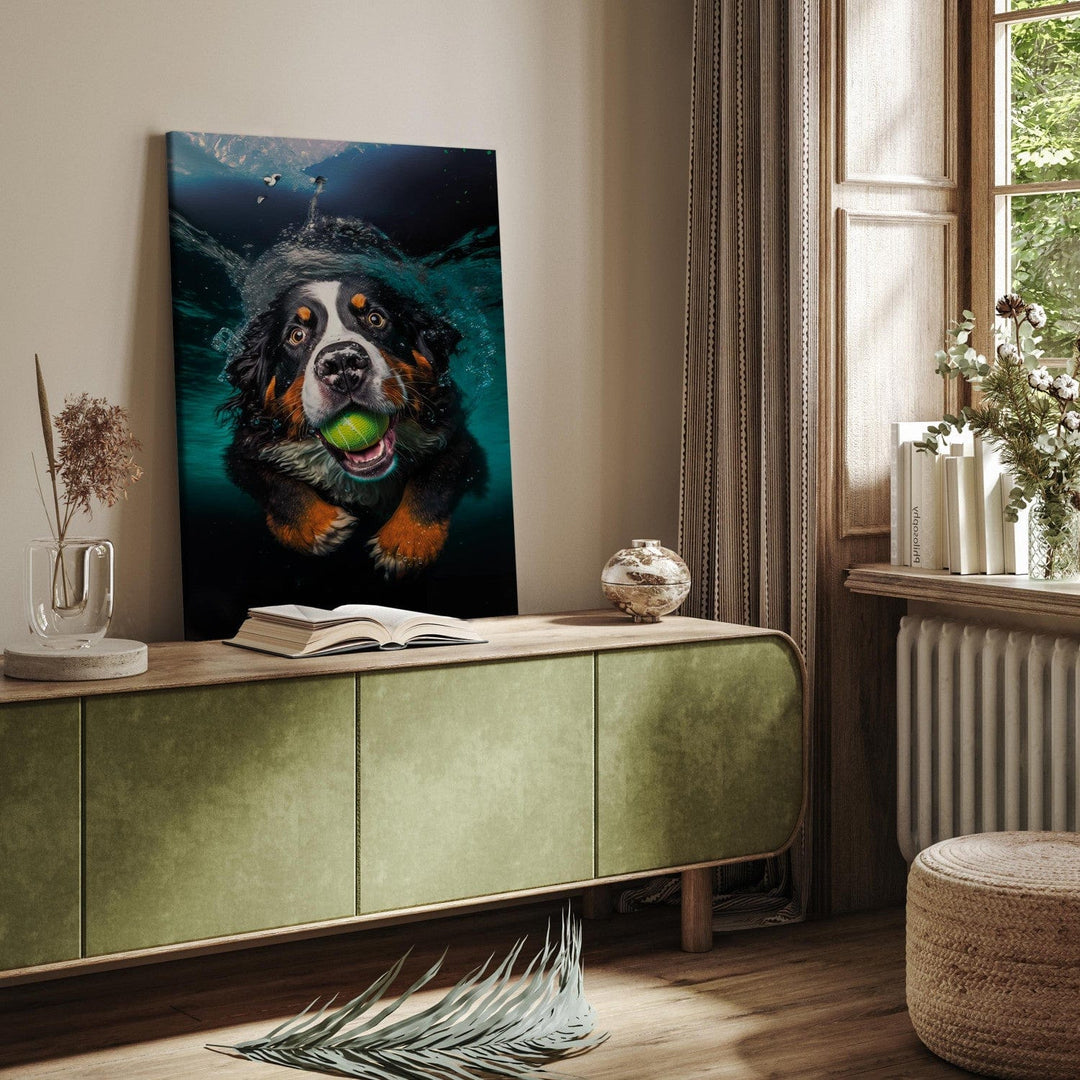 Canvas-taulut - Berninpaimenkoira, kelluva koira pallo suussa, 150167