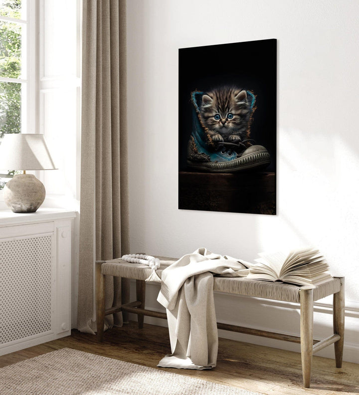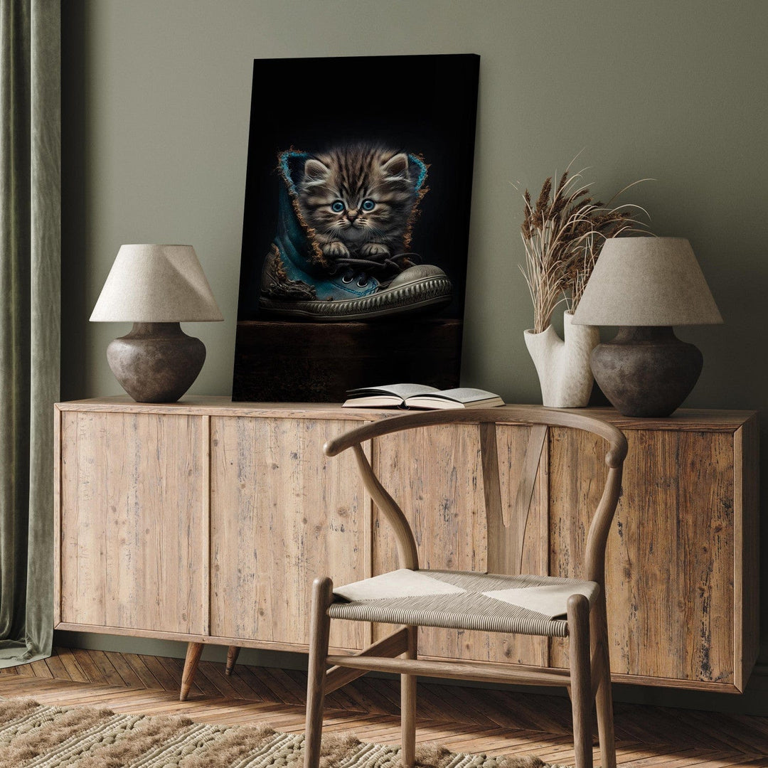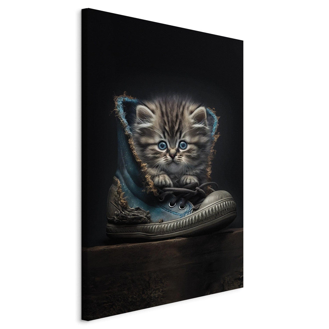 Canvas-taulut - Pieni kissa, jolla on siniset silmät kengässä, 150153