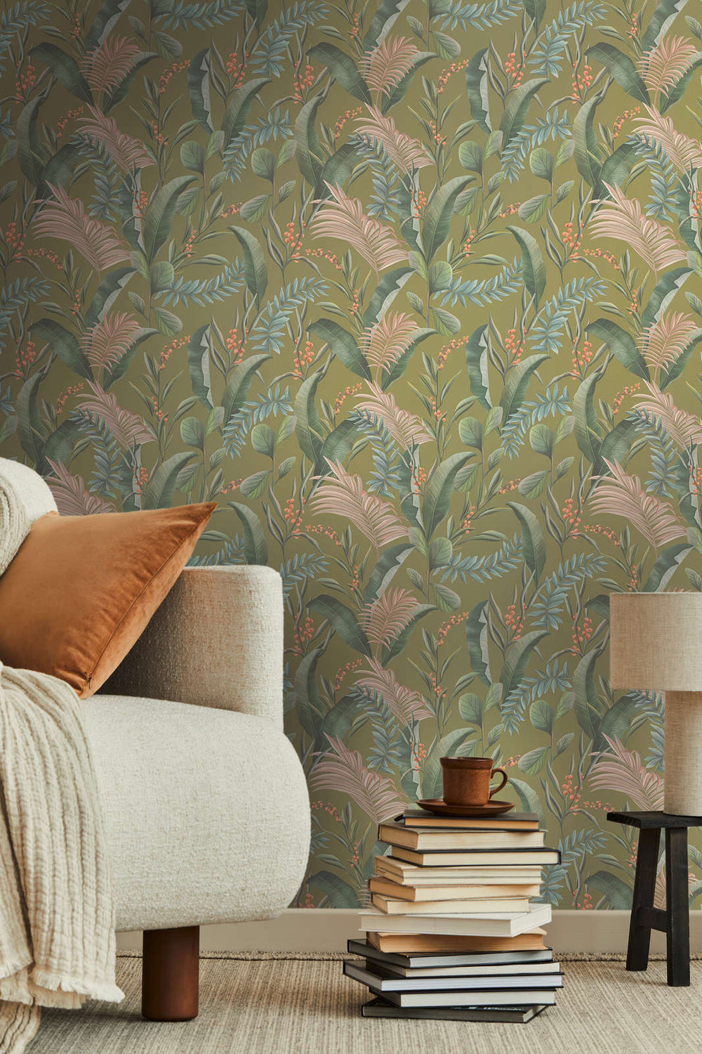 Tapetti eksoottisilla lehdillä, matta: vihreä, 1402173