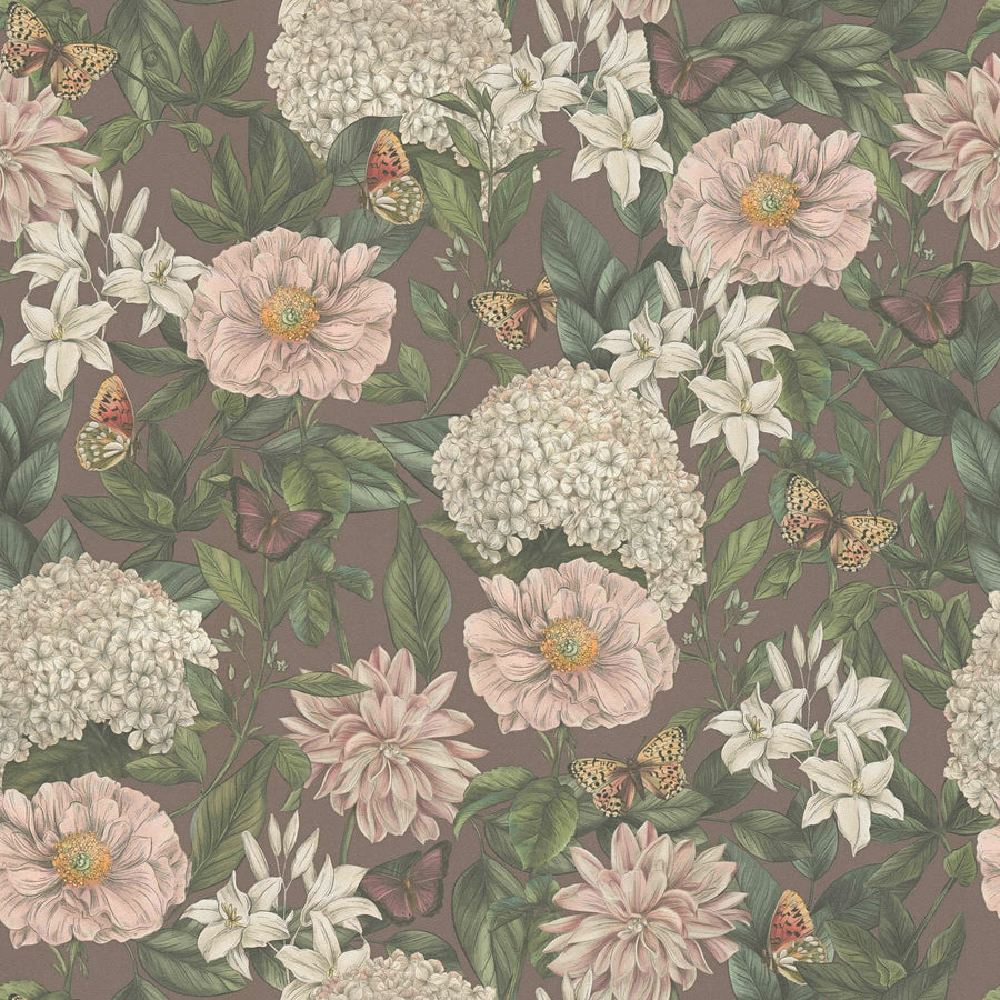 Tapetti, jossa on kukkia ja perhosia, matta: AS Creation 1402027
