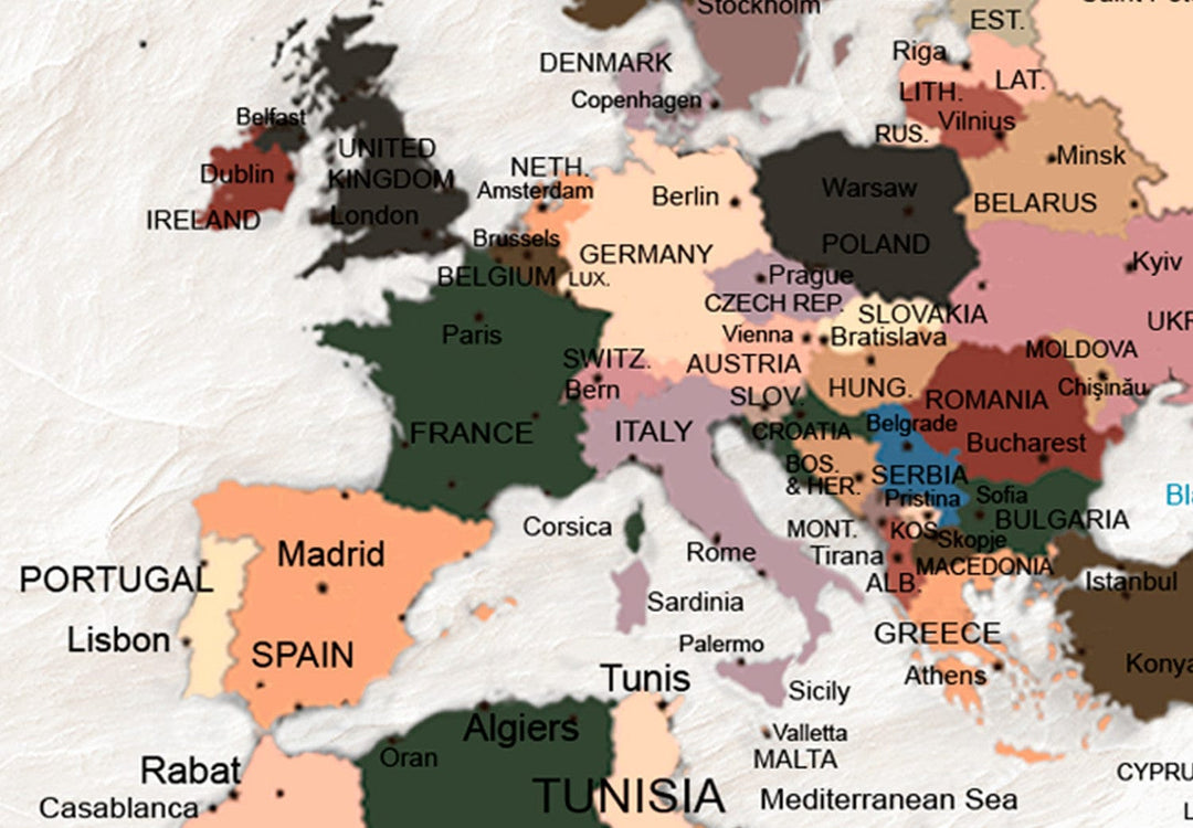Canvas-taulut Maailmankartta: kiviset valtameret