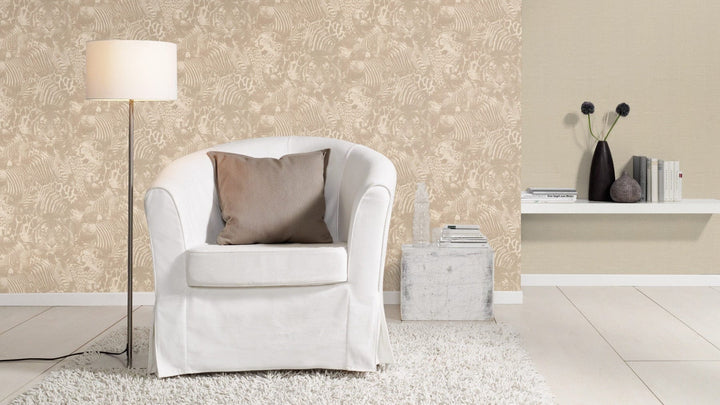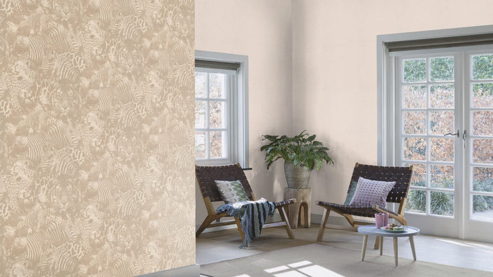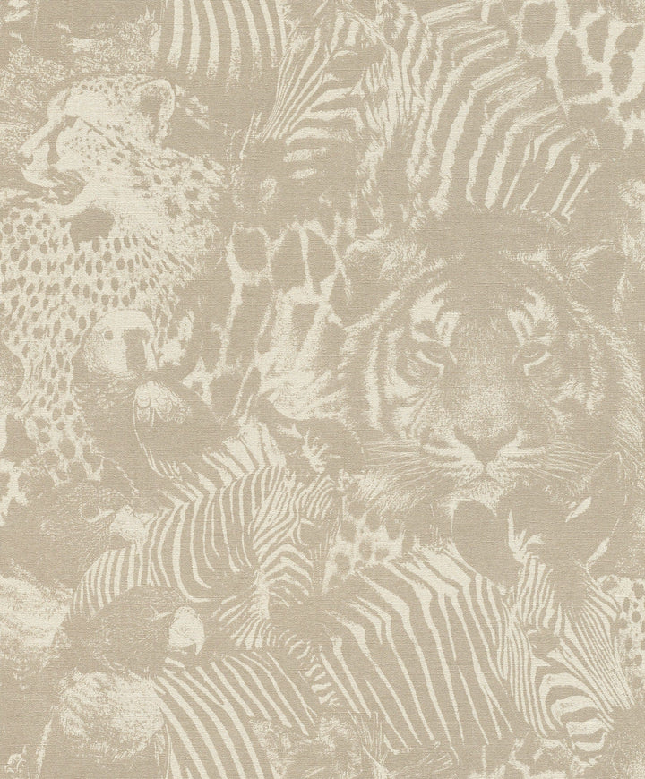 Mennään villisti! Tiikerit, papukaijat, gepardit, seeprat, kirahvit ja budjettikirahvit muuttavat ja tuovat seikkailuhenkeä kotiisi. Lämpimän beigen ja norsunluun värisinä painetut, kankaankaltaisen tekstuurin omaavat tapetit ilahduttavat nuoria ja vanhoja ja kutsuvat haaveilemaan jännittävistä löytöretkistä. Tervetuloa villiin luontoon!