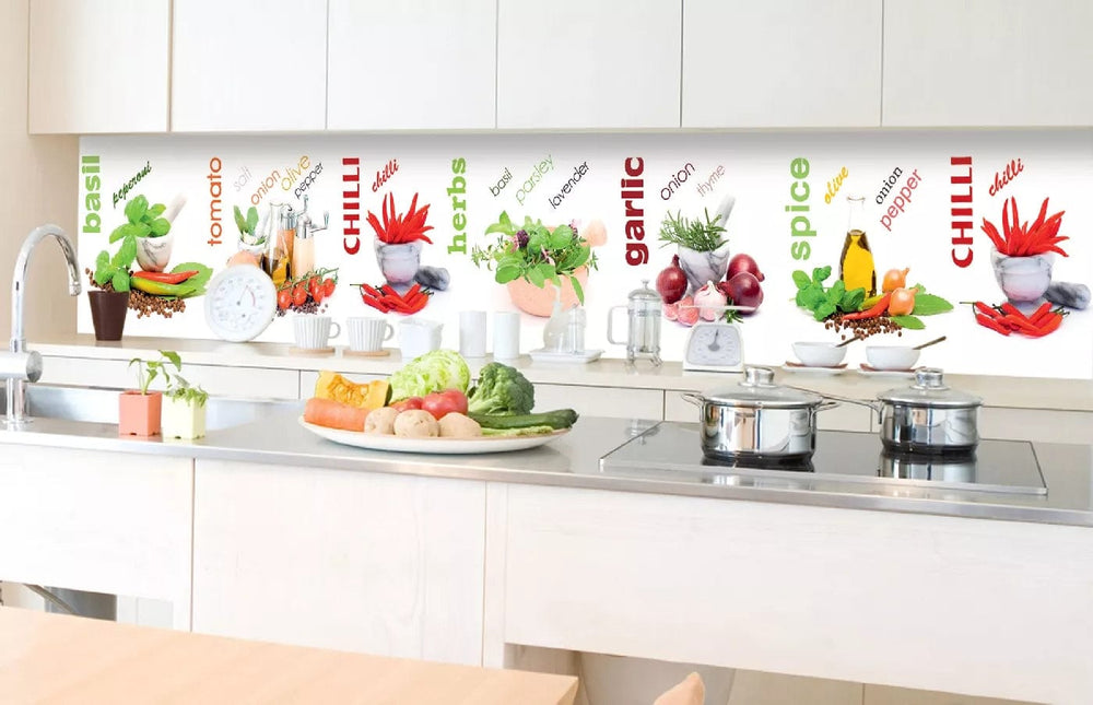 Laminoidut valokuvatapetit keittiöön - Garšvielas (350x60 cm)