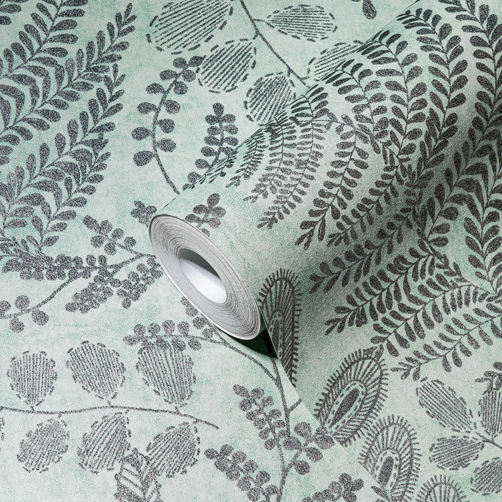 Skandi tapetti lehtiä kuvioitu vihreä, 1366315