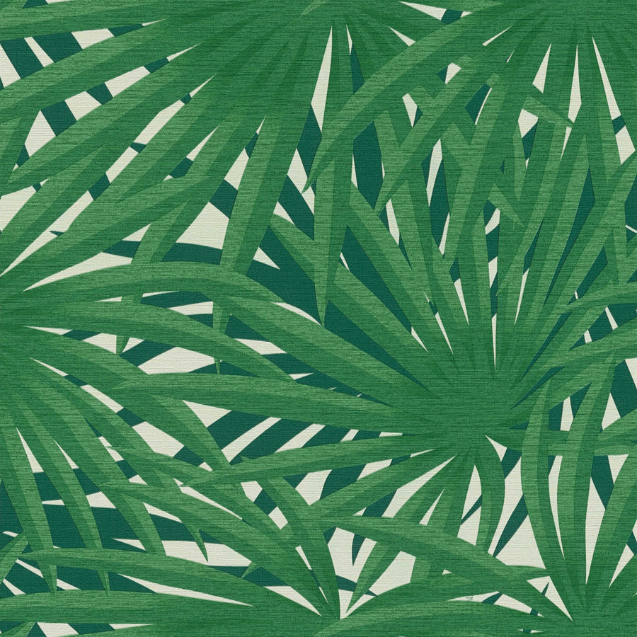 Tapetes ar džungļu lapu motīvu tumši zaļā krāsā - 1375173 AS Creation