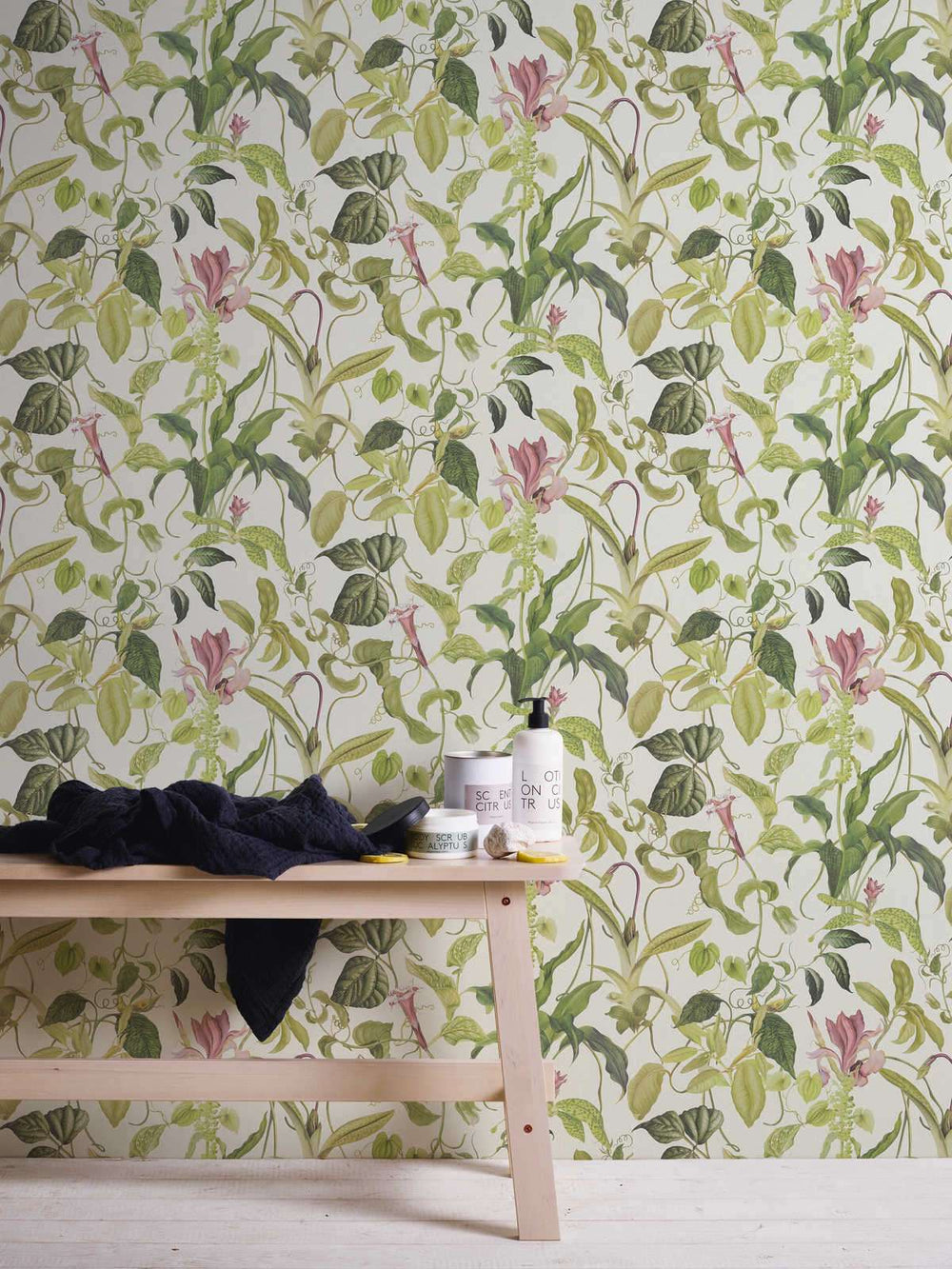 Flizelīna tapetes ar tropu ziediem, zaļas, krēmkrāsas AS 379881 Tapetenshop.lv