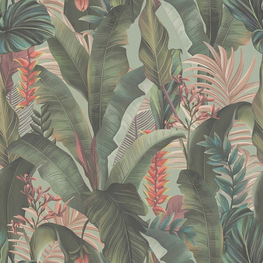 Krāsainas tapetes ar lapu rakstu un tropisku stilu - zaļās, 1375227 AS Creation