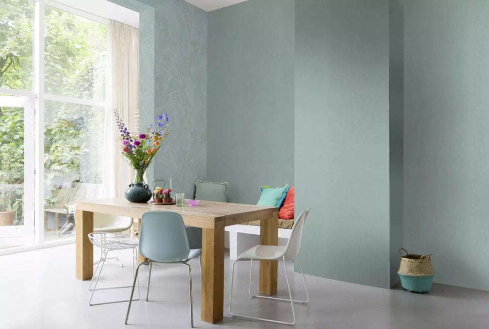 Vienkrāsainas tapetes viesistabai zaļos toņos, 633665 RASCH
