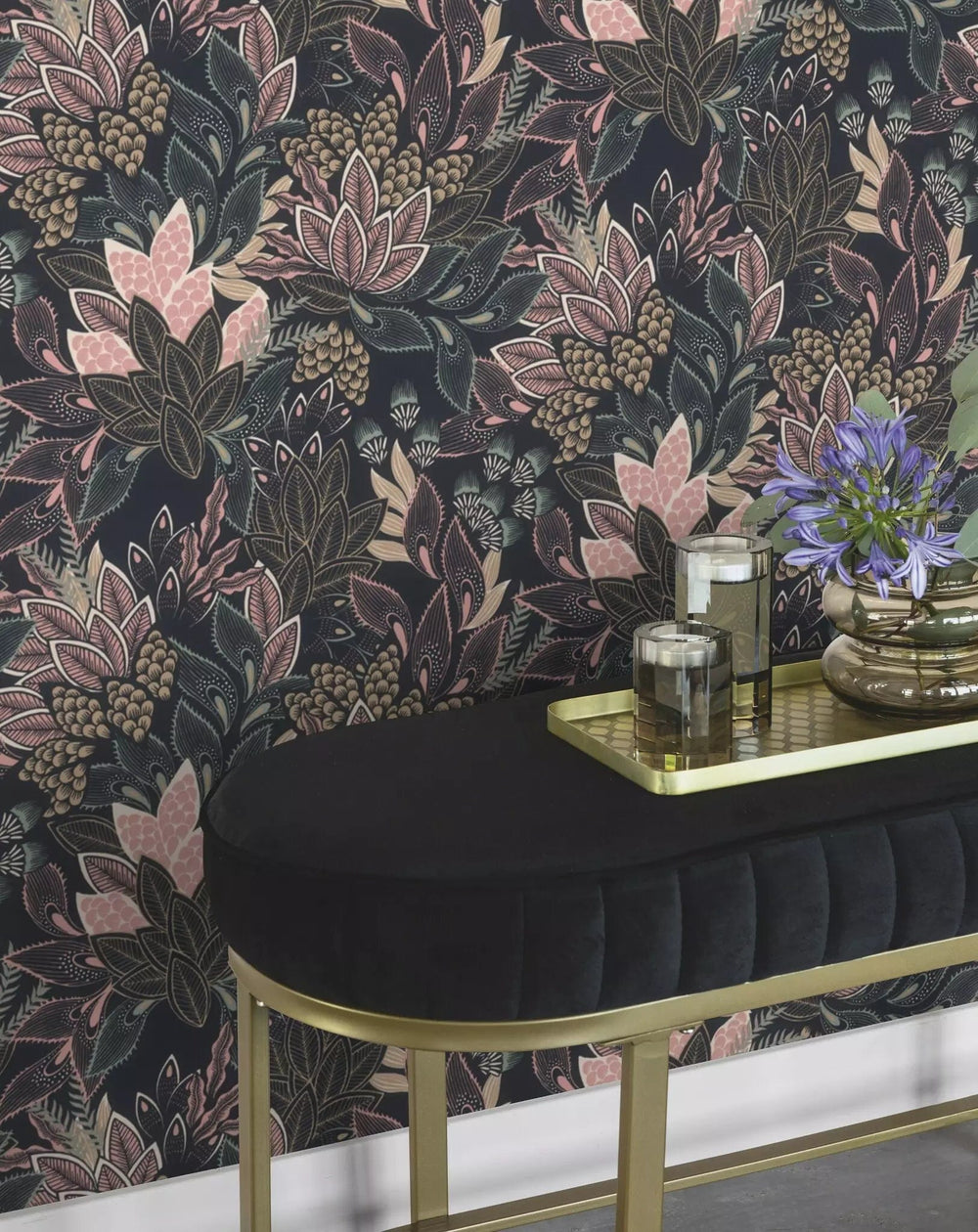 Monivärinen tapetti yksityiskohtaisella kukkakuviolla, 1367623