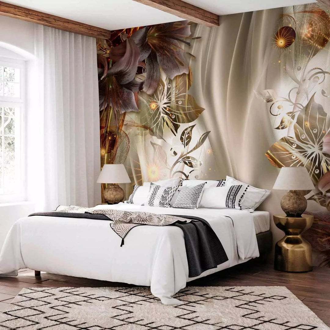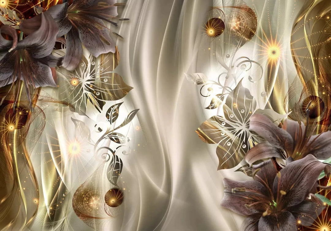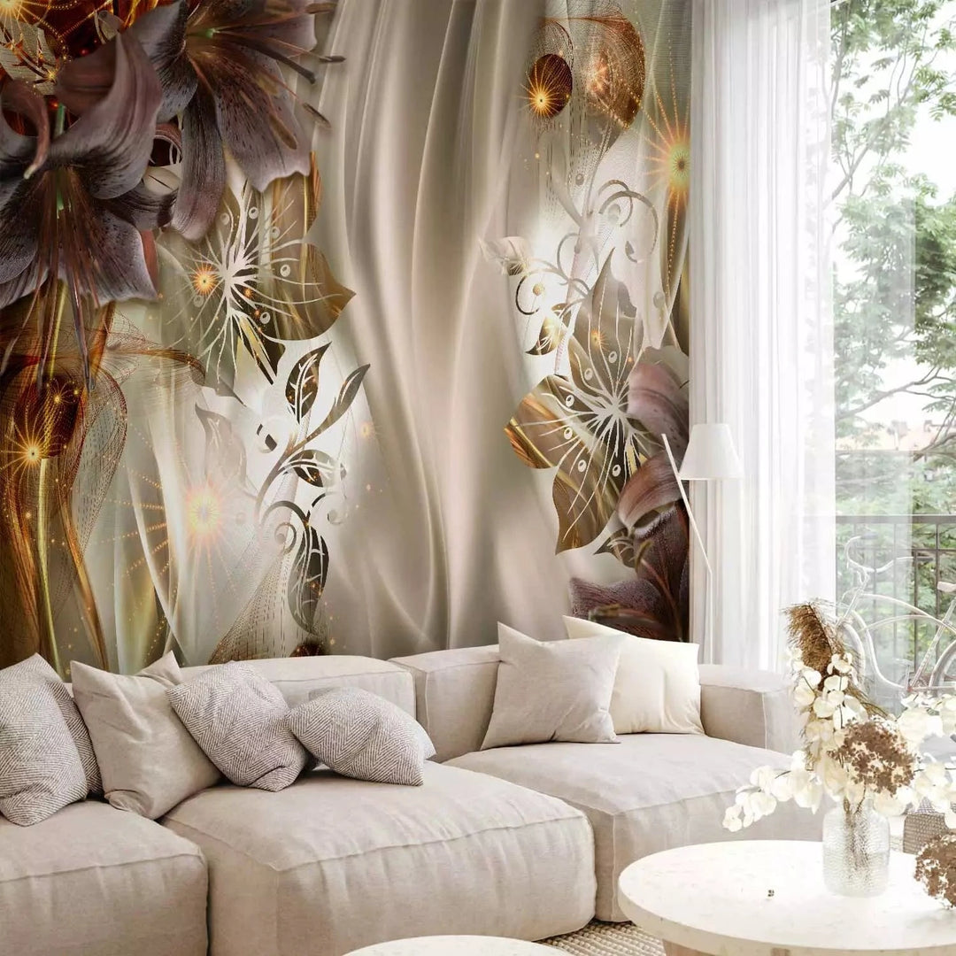 Valokuvatapetti jossa on kukkia ja abstrakti kuvio - Shades of Amber, 91211