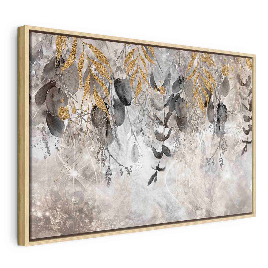 Glezna koka rāmī - Pelēkas un zelta lapas uz pelēka fona G ART