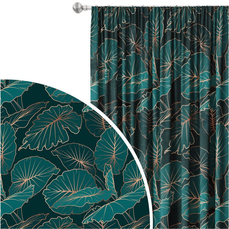 Dekoratīvie Dienas un nakts aizkari - - Nakts džungļi, botāniska kompozīcija ar alokāzijas lapām, 147162 Tapetenshop.lv